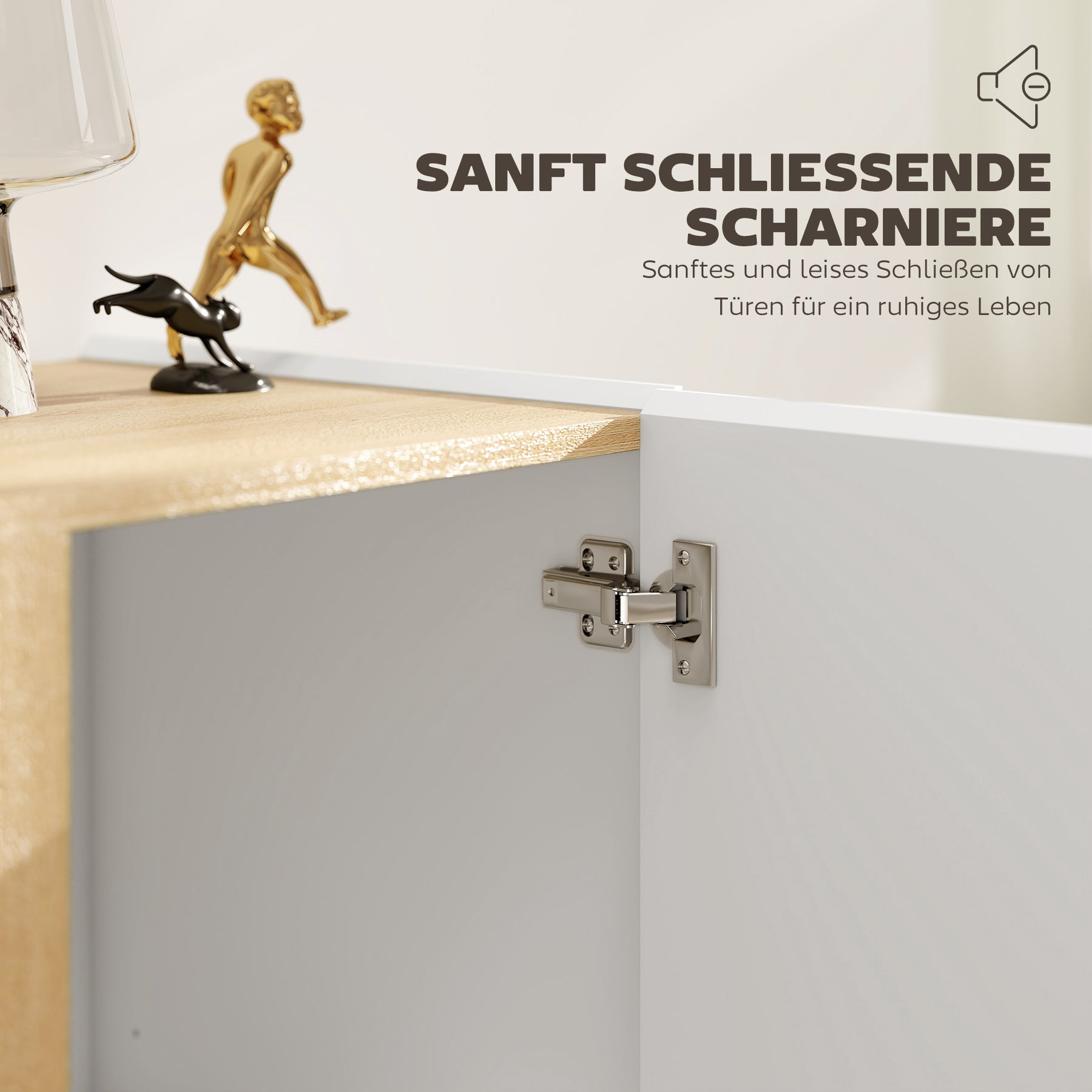 Skab harmoni i din husholdning med denne moderne skænk, der kombinerer stil og funktionalitet. De bløde lukkede døre sikrer et fredeligt miljø, samtidig med at de beskytter dine fingre. Justerbare hylder giver dig mulighed for fleksibel opbevaring, så du nemt kan holde orden på dit service og pyntegenstande.
