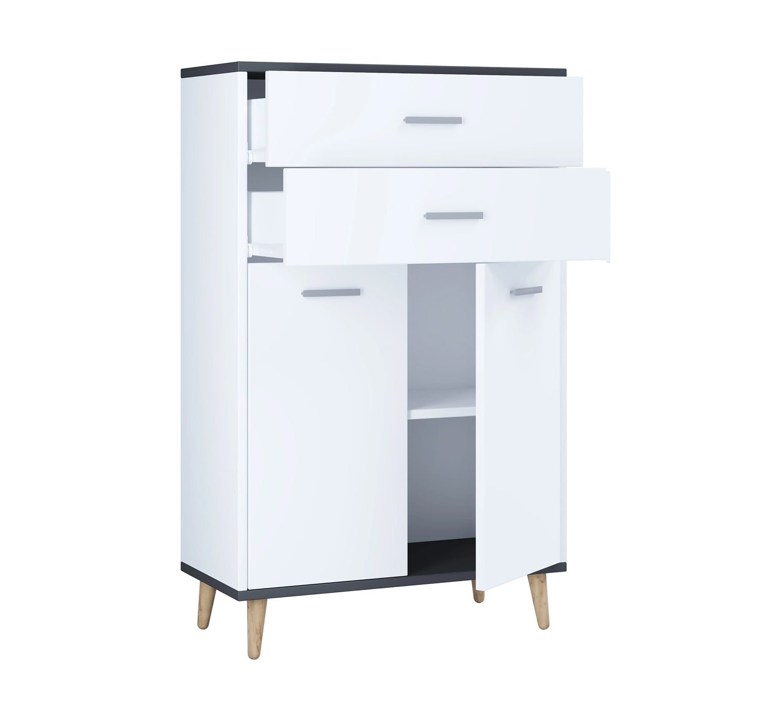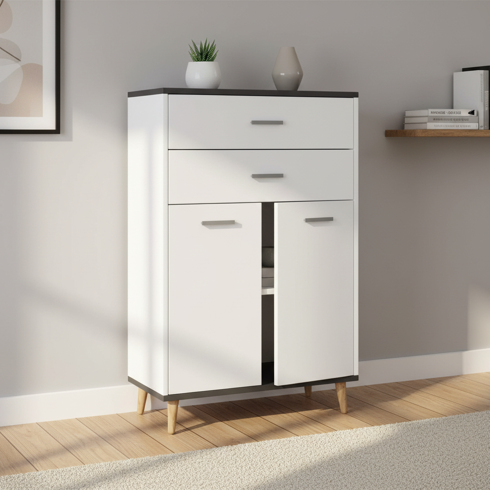 På grund af det tidløse og moderne design er sideskabet "Landos" et smukt blikfang i enhver stue.