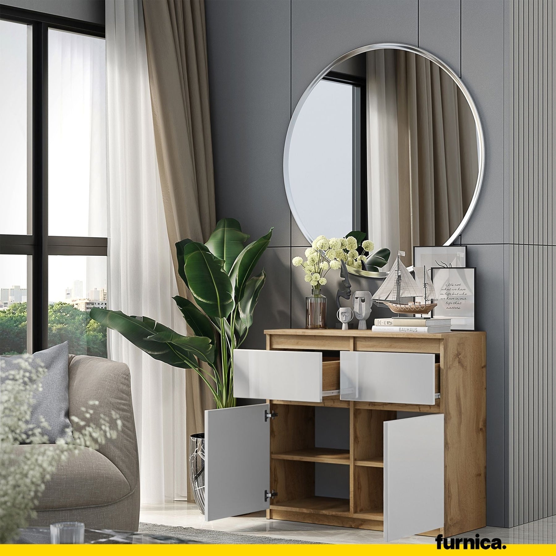 Stilrent sideboard i Wotan eg / hvid højglans – H75 × B80 × D35 cm
