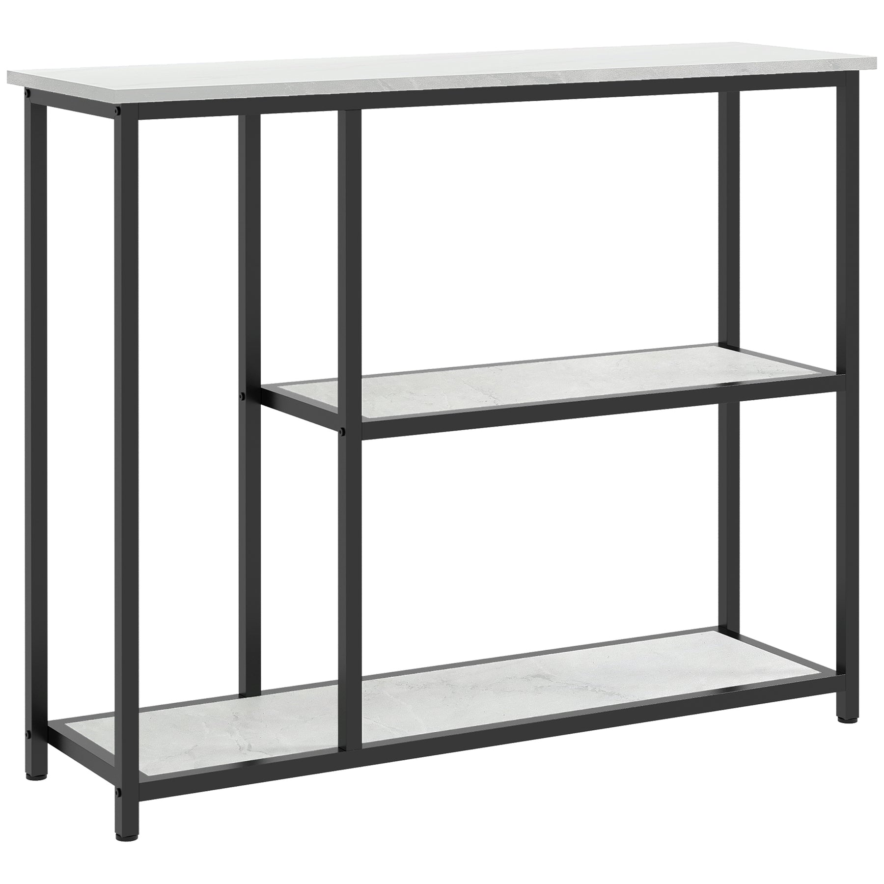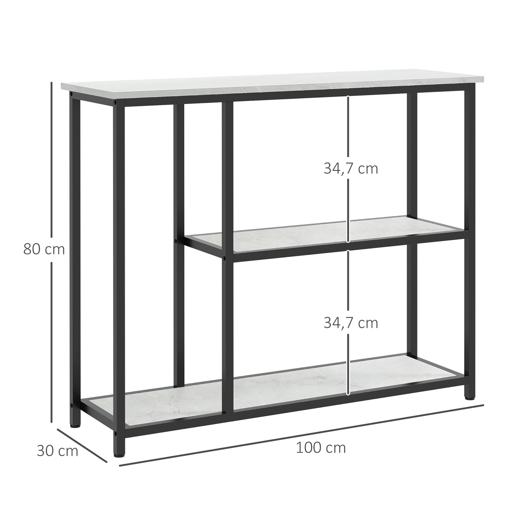 Leder du efter en smart opbevaringsløsning med et elegant design til din entré? Dette konsolbord tilbyder rigelig opbevaringsplads med tre niveauer til visning af familiebilleder, planter eller meget mere. Den robuste konstruktion af træ og stål sikrer pålidelighed og nem vedligeholdelse.