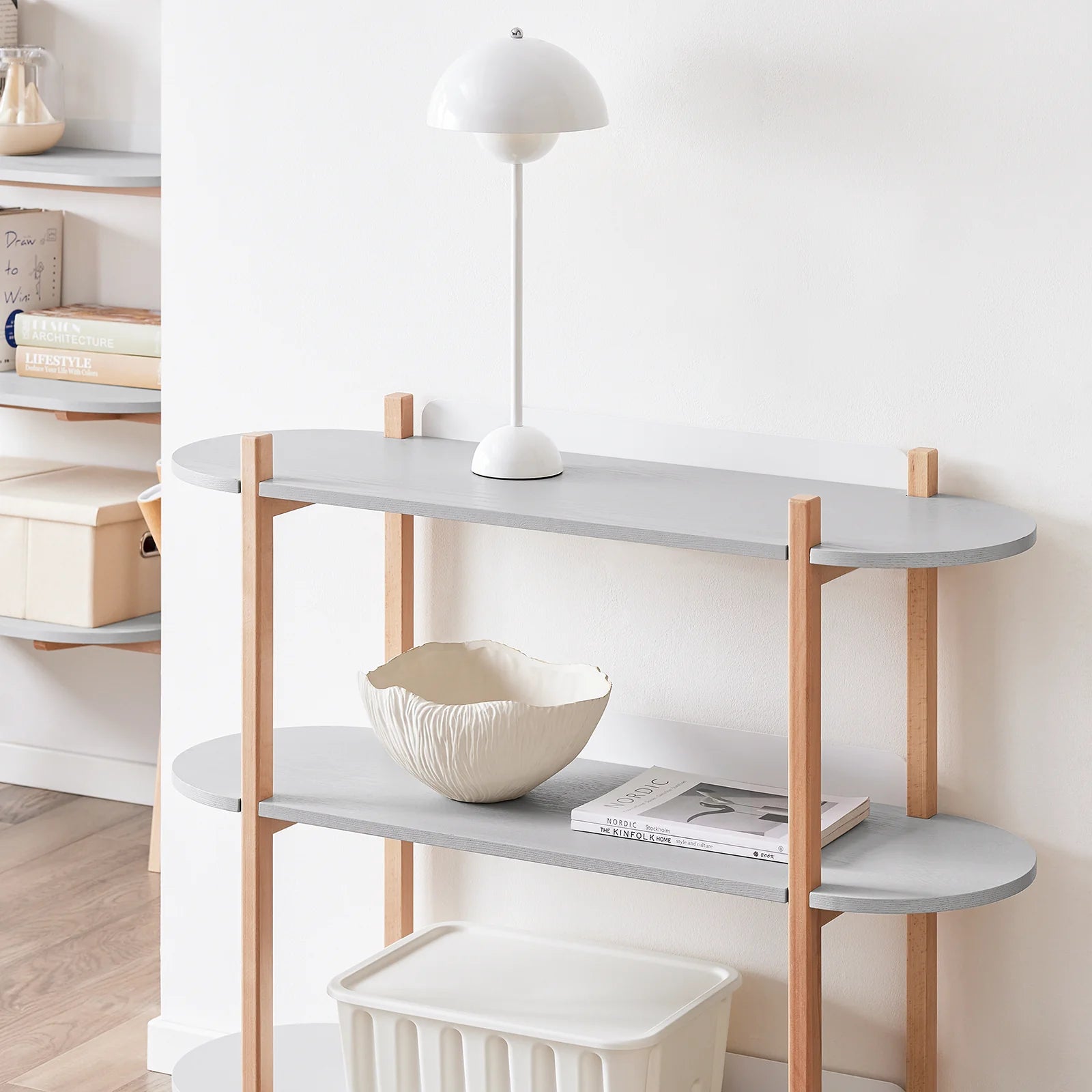 Drømmer du om en elegant og praktisk opbevaringsløsning, der nemt glider ind i din indretning? Denne minimalistiske reol i et alsidigt gråt og træfarvet design er svaret. Den passer ubesværet ind i enhver boligstil og tilfører et strejf af moderne enkelthed.