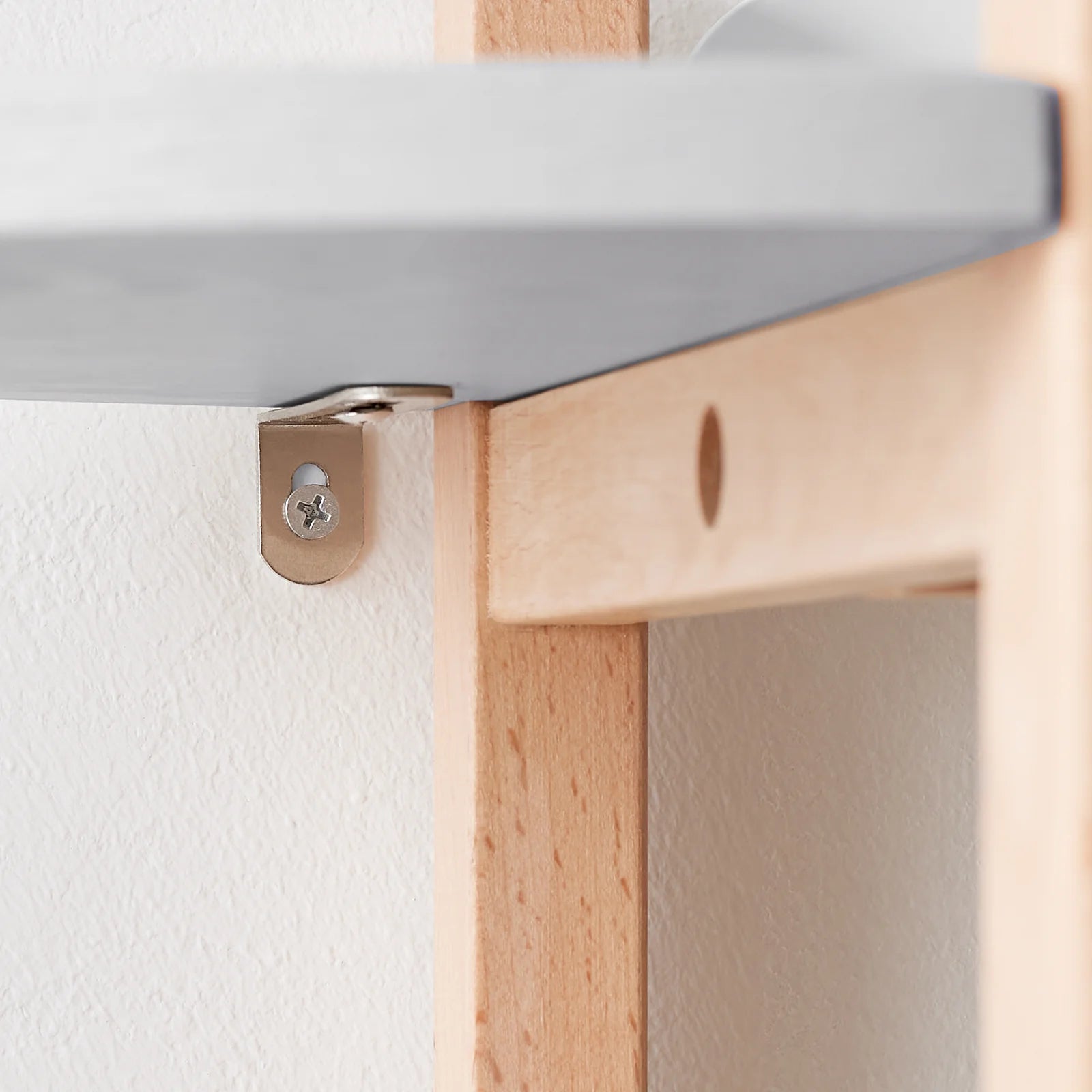 De smarte træplader på bagsiden af hver hylde sikrer, at dine ting står stabilt og ikke falder ned. Derudover er reolen designet med afrundede hjørner, hvilket øger sikkerheden i dit hjem.