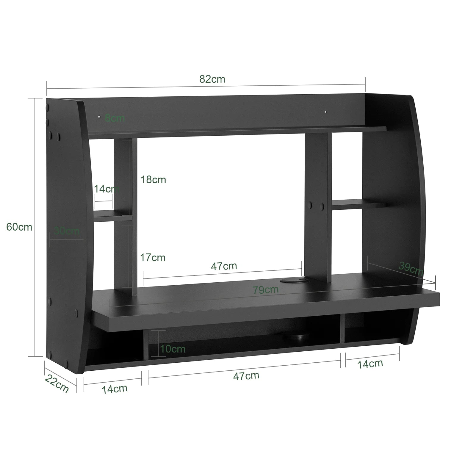 Dette væghængte skrivebord er en praktisk og pladsbesparende løsning, der passer perfekt til både hjemmet og kontoret. Det er designet med maksimal funktionalitet og kan monteres overalt i boligen.