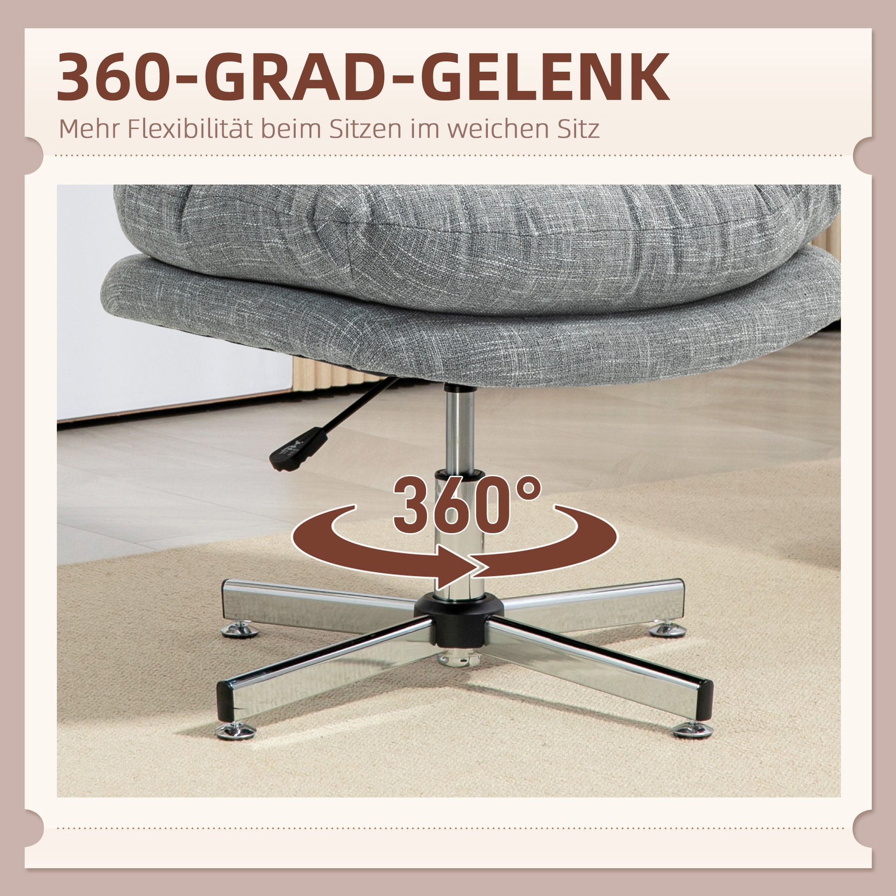 Oplev den ultimative komfort med denne kontorstol, der byder på en 18,5 cm tyk skumpolstring og en 15 cm tyk ryglæn, betrukket med åndbart stof i linned-look. Den buede ryglæn med knapsyninger tilfører elegance og raffinement, hvilket gør den til et perfekt valg til dit arbejdsområde.