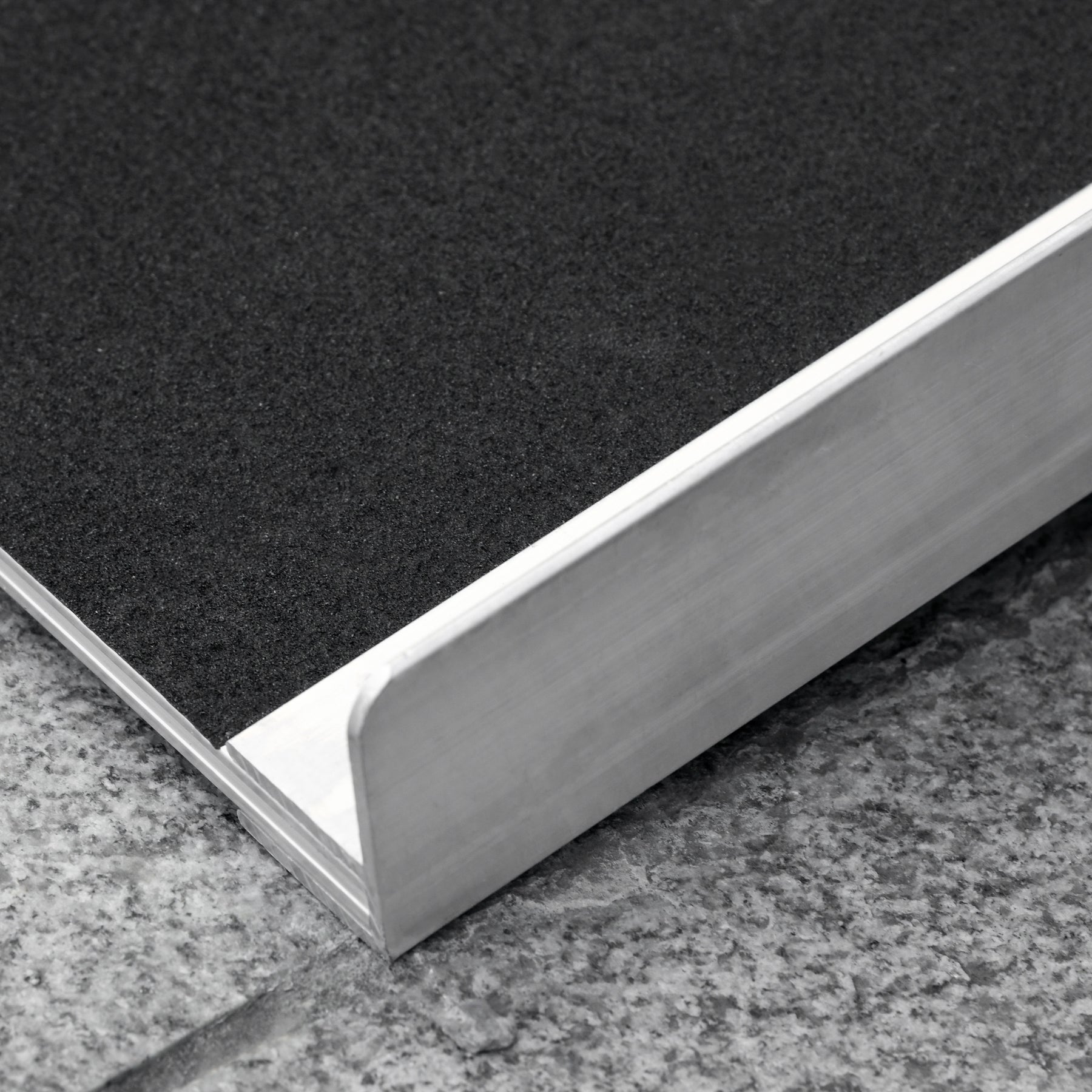 Skab nem mobilitet med denne lettransporterede aluminiumsrampe. Den er lavet af robust, rustbestandig aluminiumslegering, der sikrer holdbarhed og høj bæreevne. Rampen har et skridsikkert PVC-lag og rækværk, der forhindrer fald, og kan nemt foldes sammen for transport.