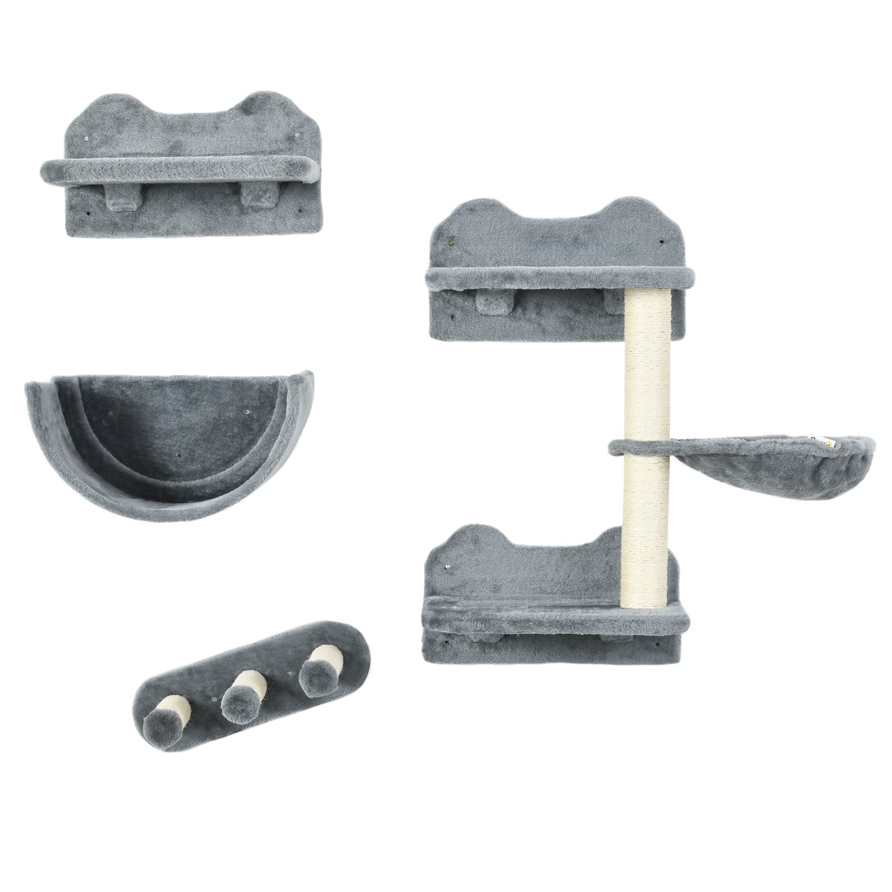 Forvandl dit hjem til et paradis for din kat med dette firedelte katteklatrevægssæt! Dette vægmonterede kradsetræsæt giver din kat et permanent sted at lege, klatre og kradse. Klatrevæggen er lavet af robust spånplade og blød plys i neutrale toner og passer problemfrit ind i enhver indretning.