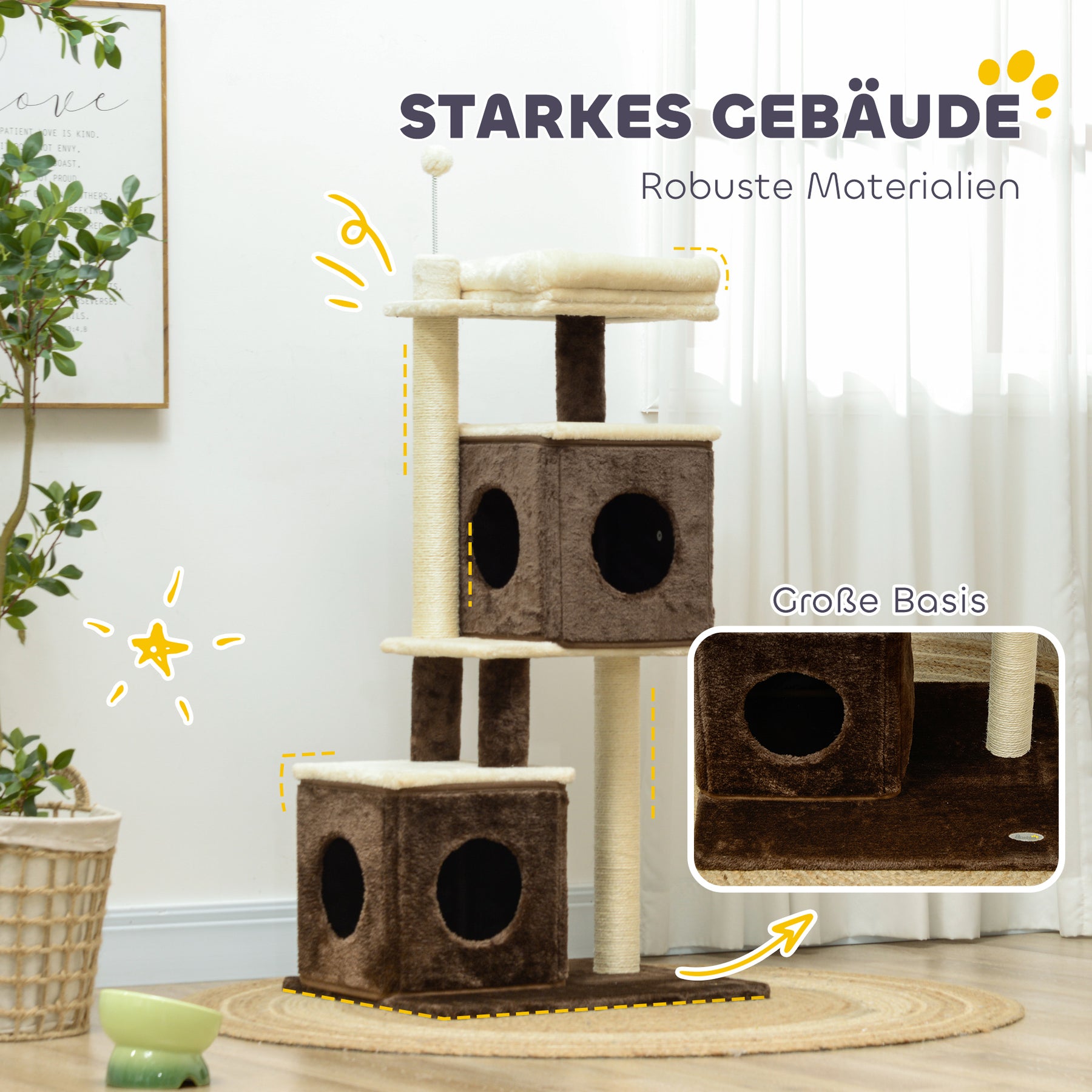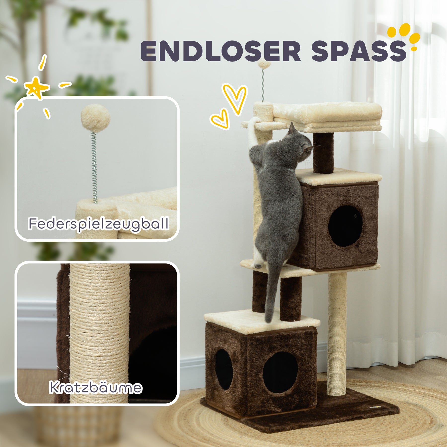 Opdag det alsidige kradsetræ: et stort legeområde og et hyggeligt gemmested i ét. Kradsetræet tilbyder bløde huse og en behagelig katteseng til afslapning samt hoppeplatforme til boltre sig. Det passer perfekt ind i enhver indretning og holder din kat beskæftiget med kradsetræer og en hoppebold.