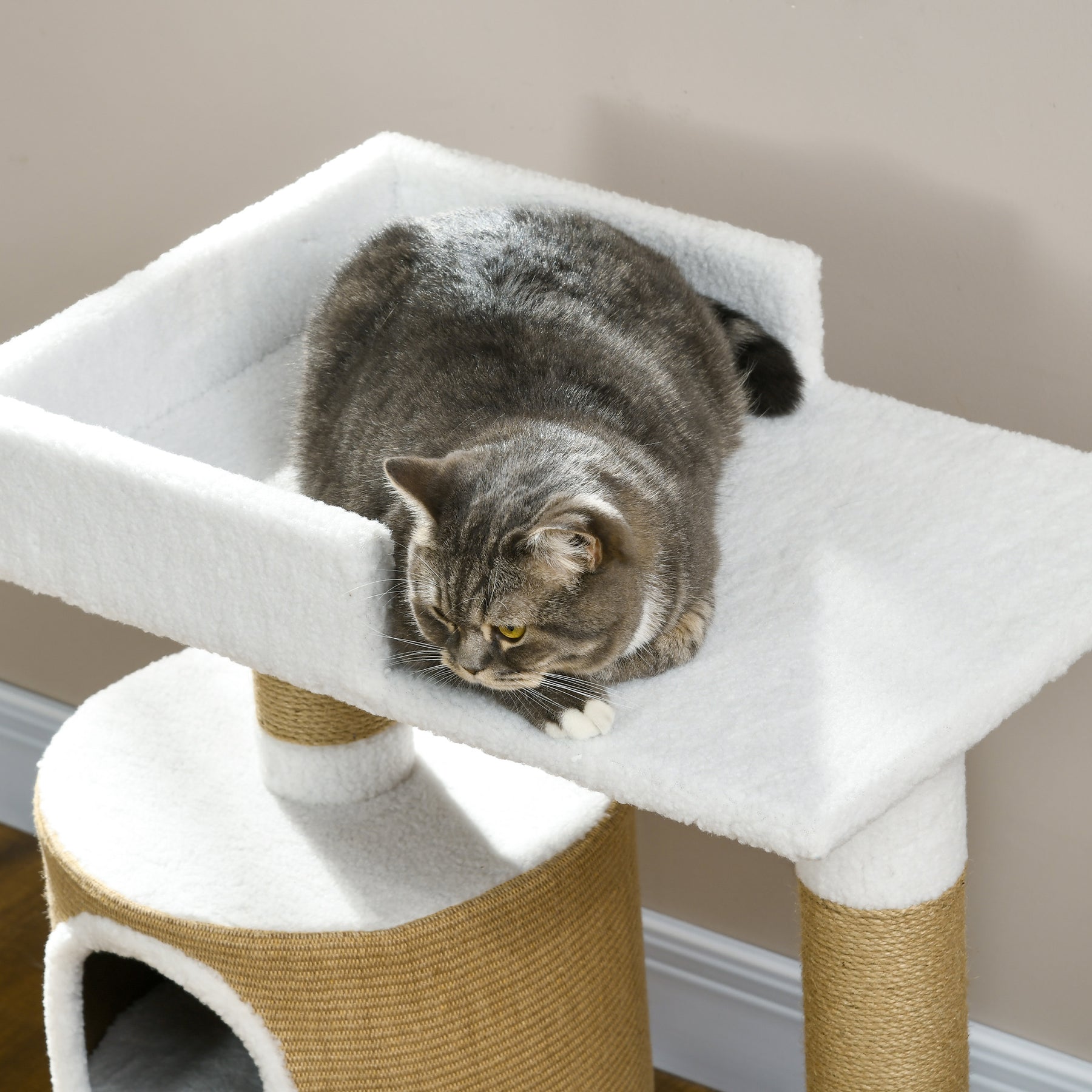 Kradsetræ til kattehule, 1 kattehule, 1 liggeflade, 70 cm x 49 cm x 79 cm, natur + hvid