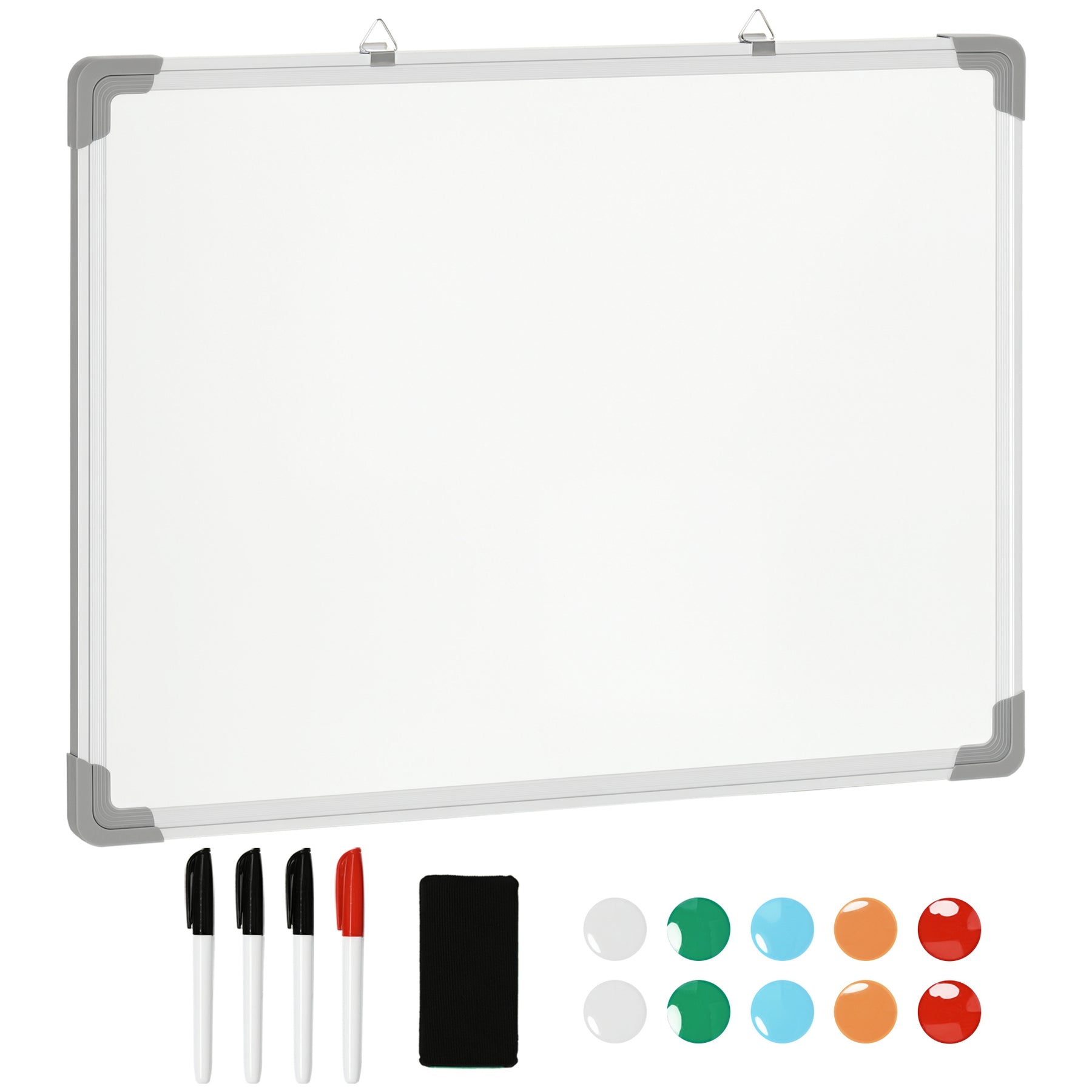 Opdag den perfekte løsning til hjemme- eller kontorbrug med denne whiteboardtavle. Den er designet med plastikhjørner for at sikre, at den forbliver intakt og uden skader. Med det medfølgende viskelæder kan du nemt og hurtigt tørre tavlen ren, så du altid er klar til nye ideer.