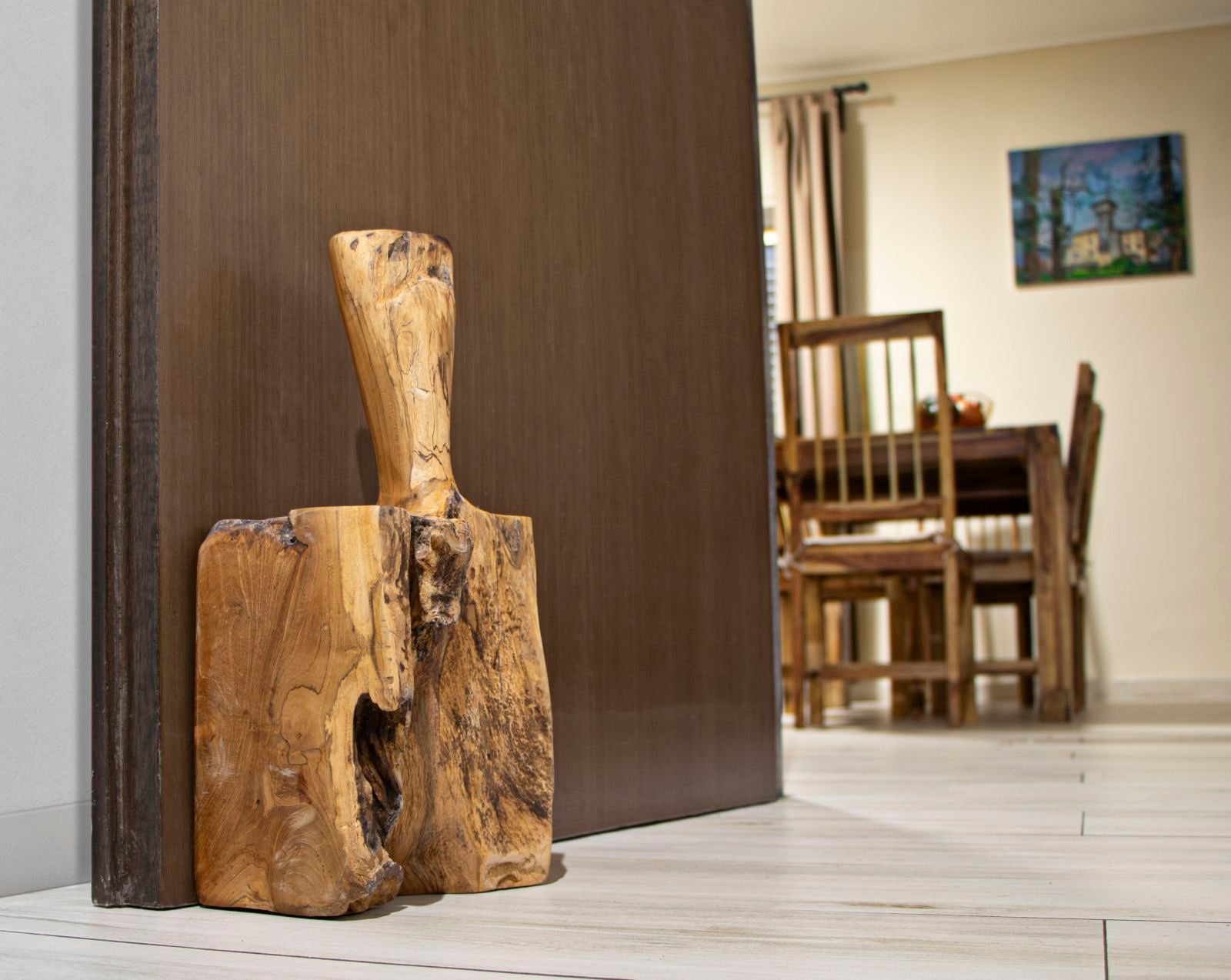 Skab et elegant og autentisk udtryk i dit hjem med denne unikke dørstopper fra Etnich-serien. Dørstopperen er håndlavet af bæredygtigt genbrugsteaktræ, der udstråler både kvalitet og godt håndværk.