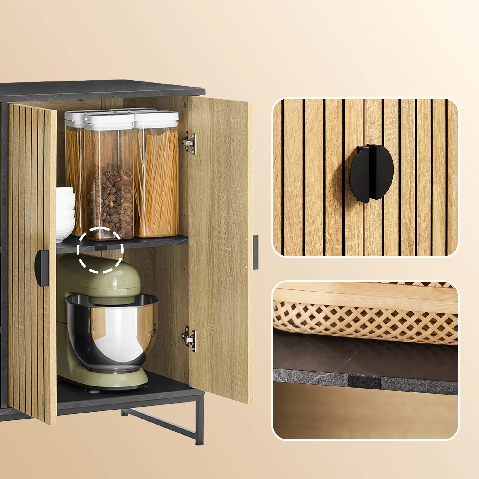 • Høje metalben: Det forstærkede stålstativ giver buffetskabet en høj bæreevne og lang holdbarhed.