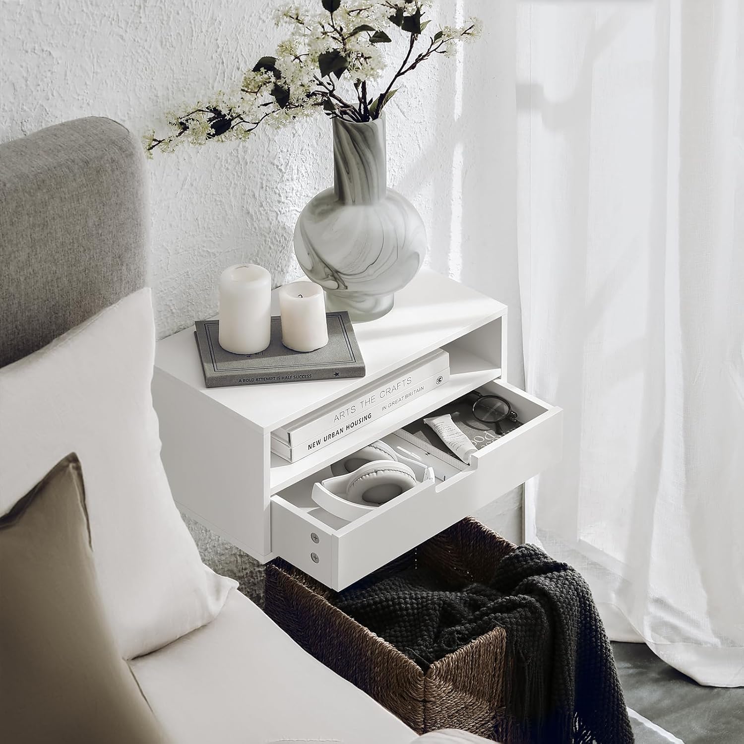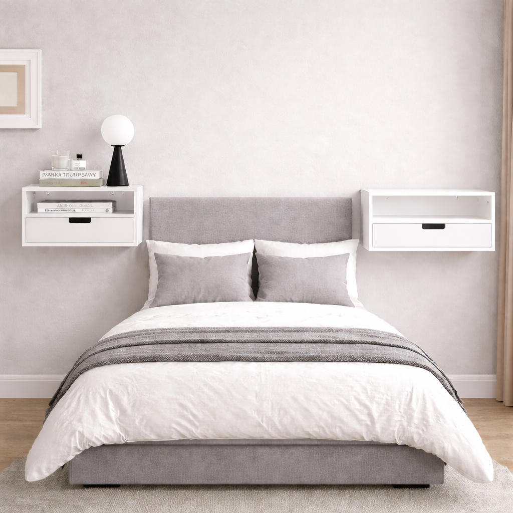 Væghængt sengebord med skuffe – pladsbesparende og moderne design - sæt med 2 styks