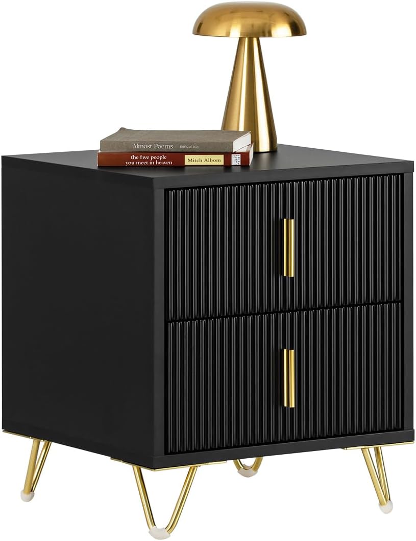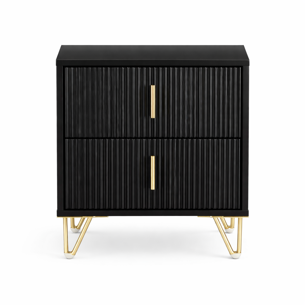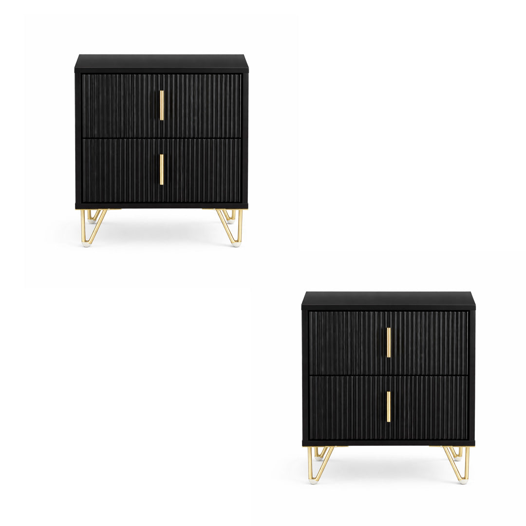 Sengeborde, sæt med 2 styks, natbord med 2 skuffer, moderne sidebord til soveværelse, B40 x T40 x H47 cm, sort