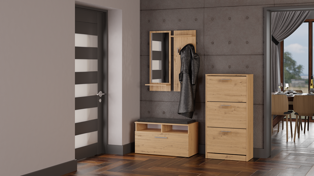 Den omhyggelige forarbejdning, det elegante design og den moderne træfinish gør, at skabet passer perfekt ind i enhver entré – både moderne og klassisk indrettet.
