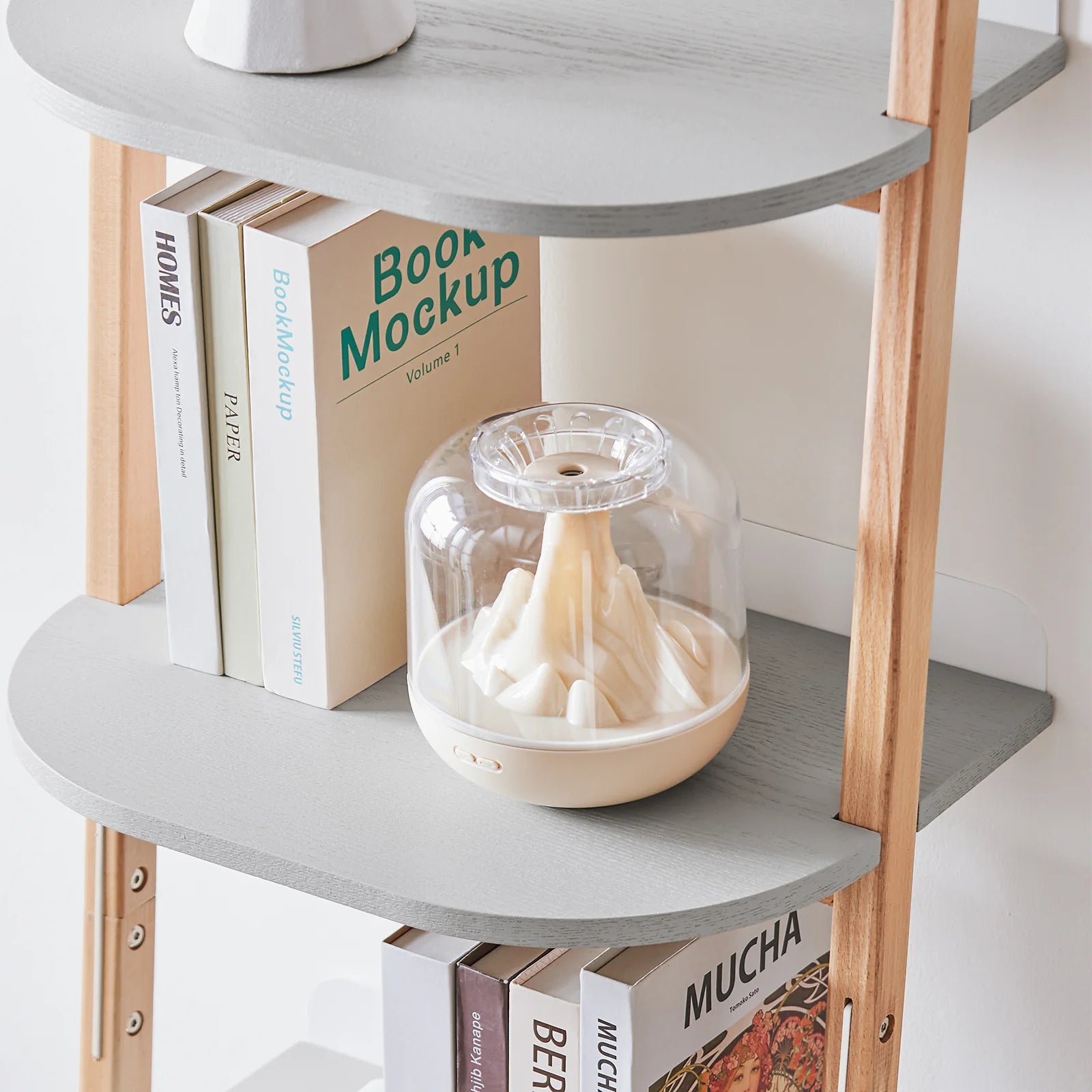 Massiv opbevaringsplads: Med fire åbne hylder får du masser af plads til at udstille dine yndlingsbøger, pyntegenstande eller planter. Hver hylde har en bagside i træ, der sikrer stabilitet og forhindrer dine ting i at falde ned.