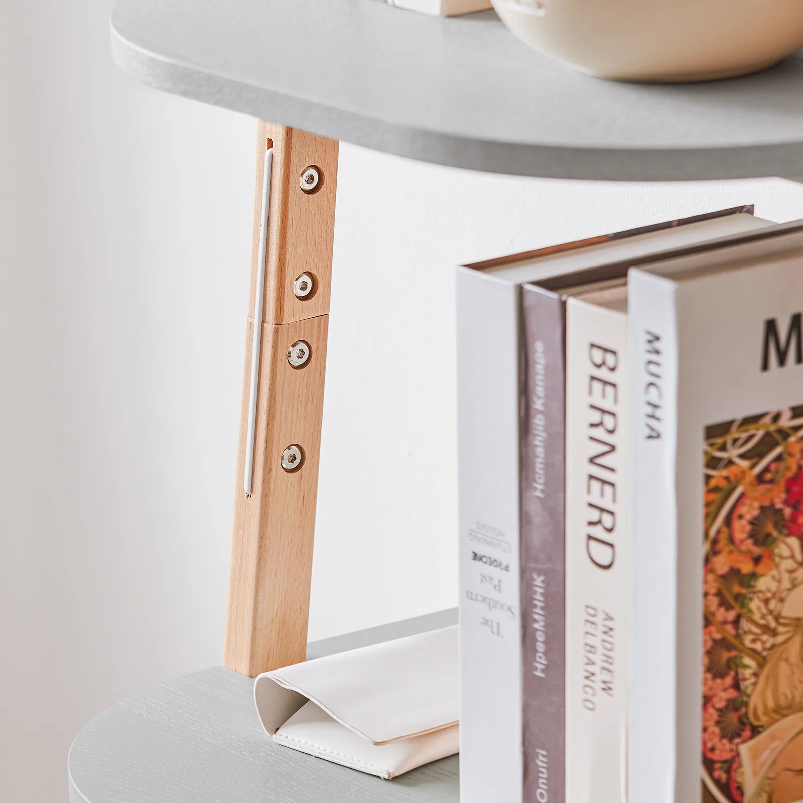 Sikkerhed og holdbarhed: Reolen er udstyret med afrundede hjørner, der mindsker risikoen for stød og skader. De robuste ben i massivt bøgetræ sikrer en stabil konstruktion og en lang levetid.