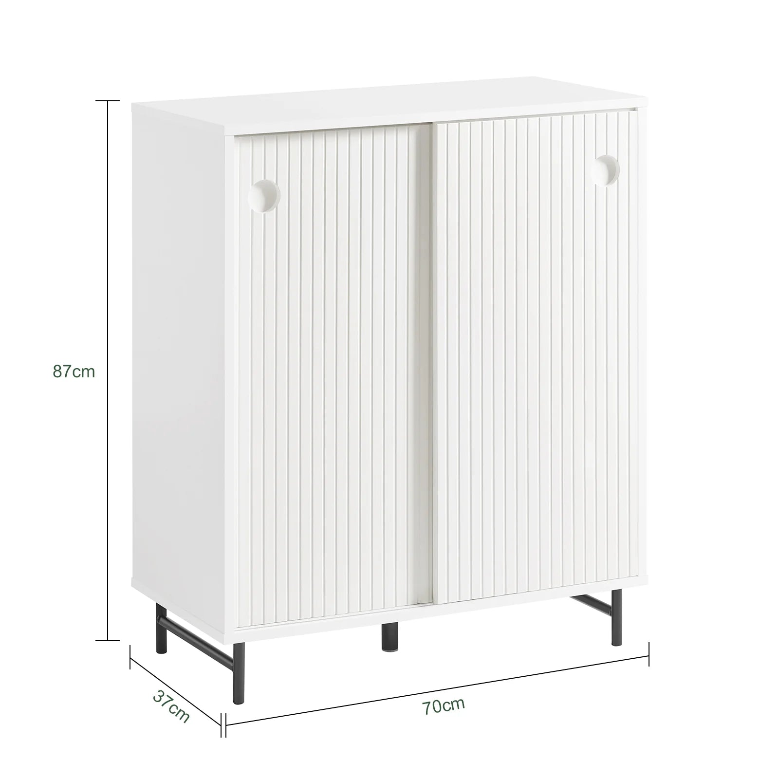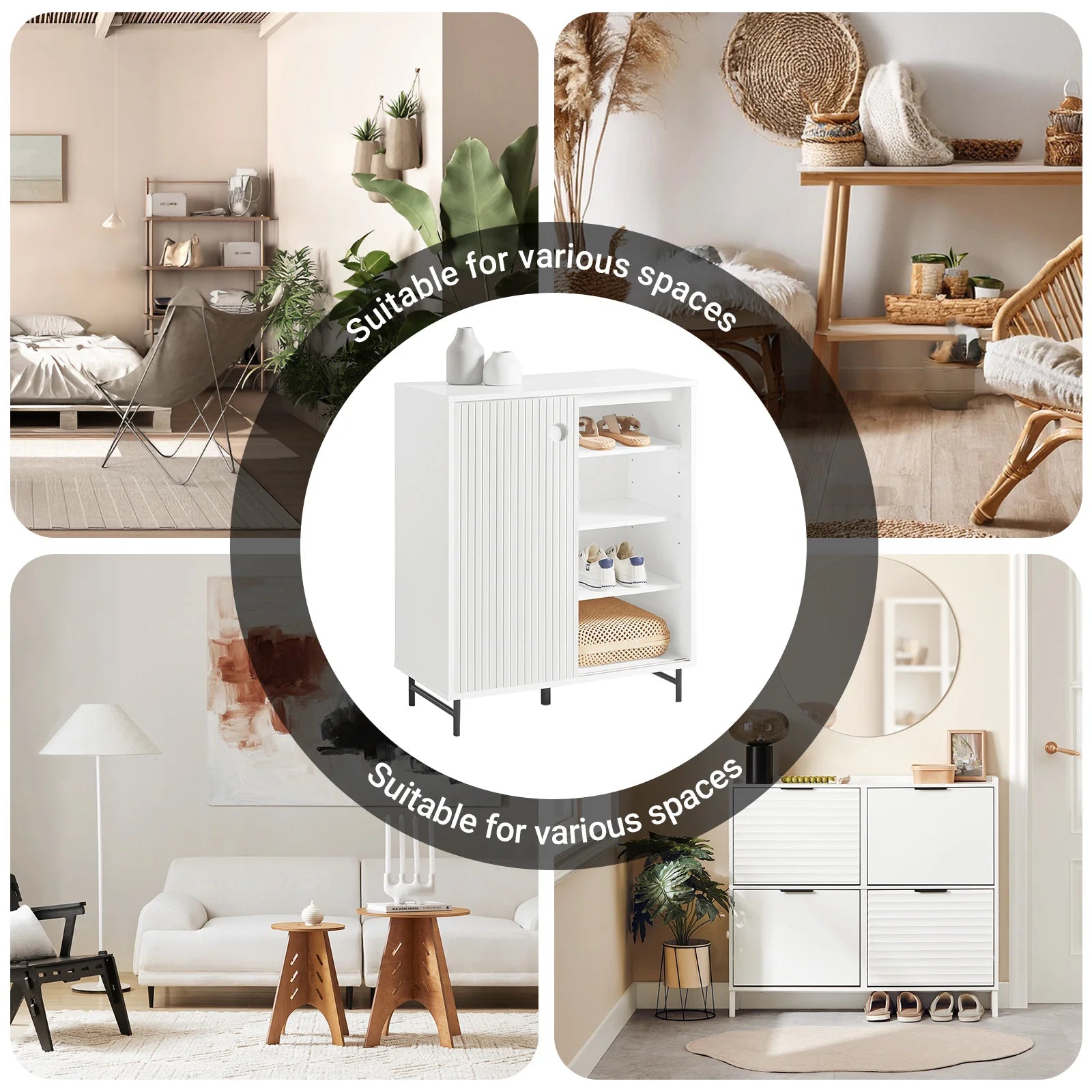 Kan bruges som skoskab i entréen, kommode i stuen eller opbevaringsskab i køkken eller spisestue – passer til både moderne og klassiske hjem.