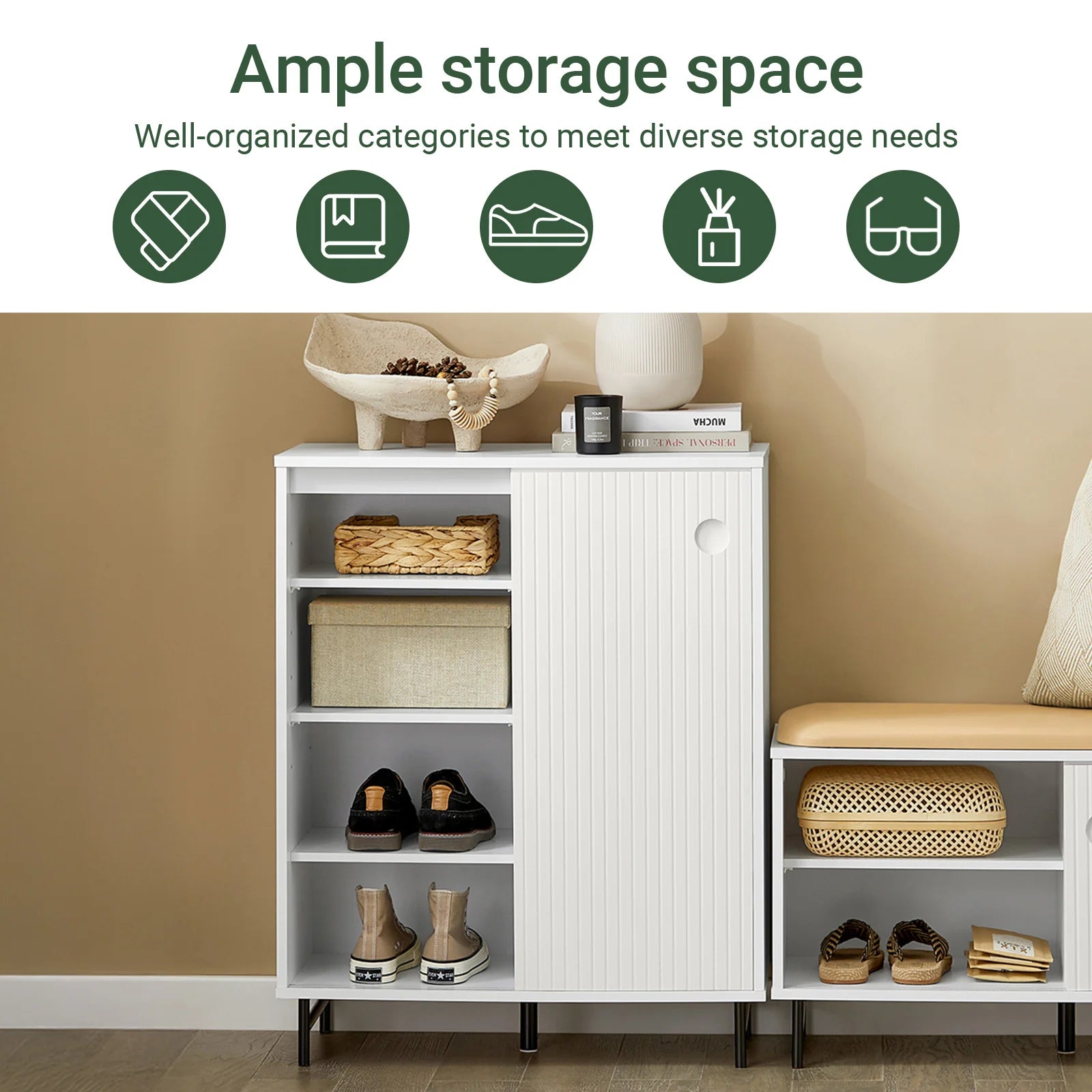 Skjuler sko og småting og giver nem adgang uden at optage ekstra plads.
