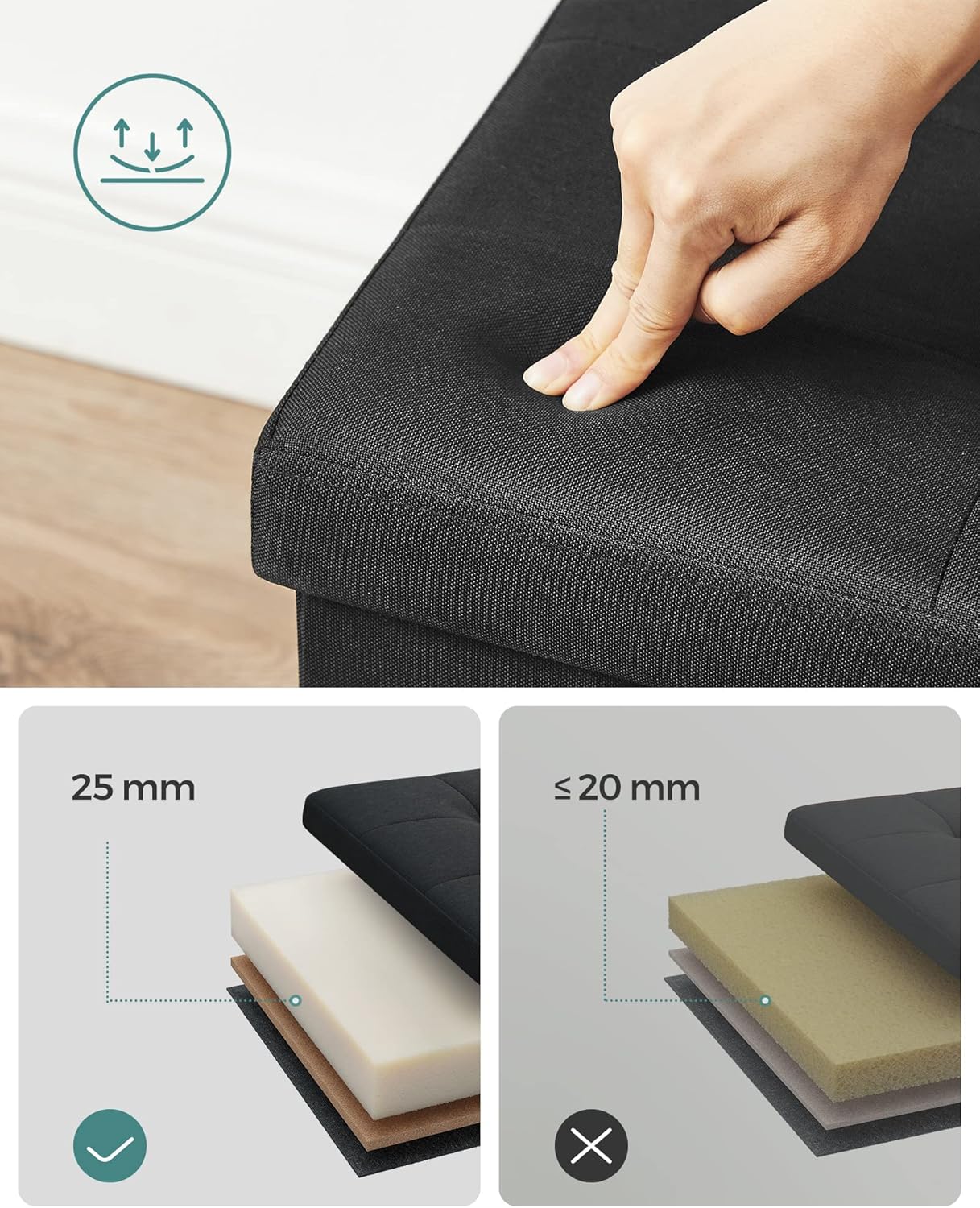 Denne elegante siddemøbel (eller opbevaringsbænk) løfter øjeblikkeligt stilen i ethvert rum. Den har en smart overflade i imiteret hør med et stilfuldt quiltet design, der tilføjer et sofistikeret touch. Takket være det dobbeltlagede stof og højelastisk skum får du en siddeoplevelse, der byder på langvarig og uovertruffen komfort.
