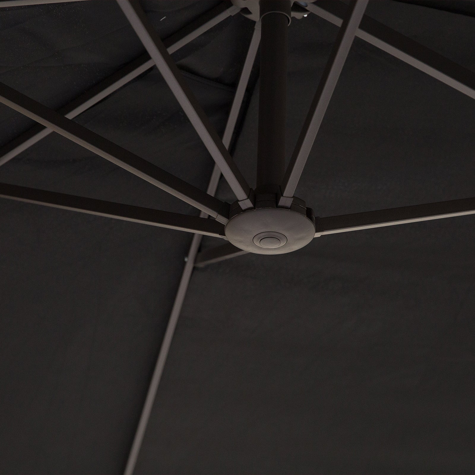 To er bedre end én! For alle, der ønsker mere skygge på varme dage, er denne dobbeltparasol det perfekte valg. Uanset om det er i haven, på terrassen, på stranden eller på campingtur, vil parasolen altid se godt ud. Åbning og lukning er en leg med det medfølgende håndsving.