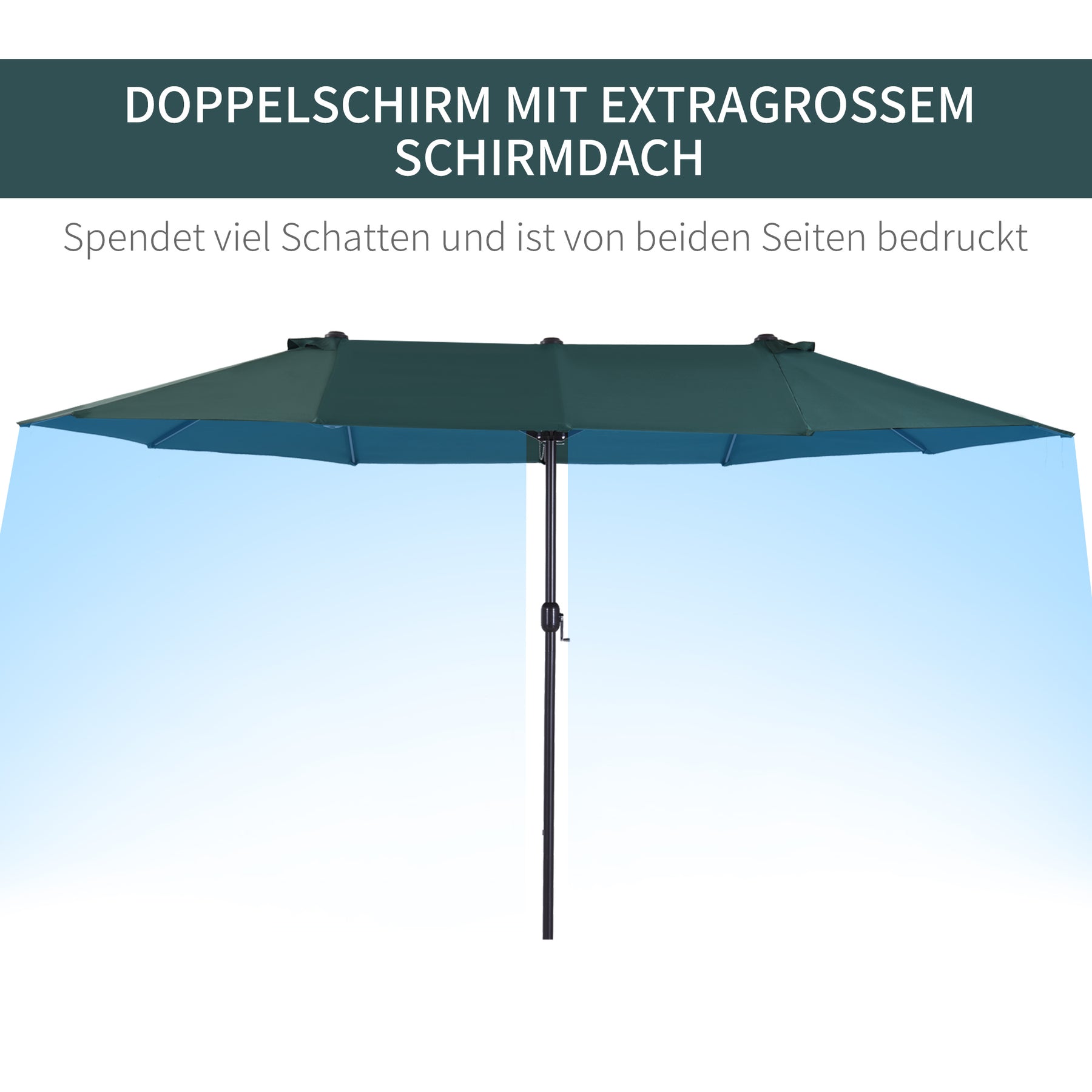 To er bedre end én! Denne dobbelte parasol i høj kvalitet er perfekt til alle, der leder efter lidt mere skygge på varme dage. Uanset om det er i haven, på terrassen, på stranden eller på campingtur, ser denne parasol flot ud og giver dig et beskyttende tag over hovedet.