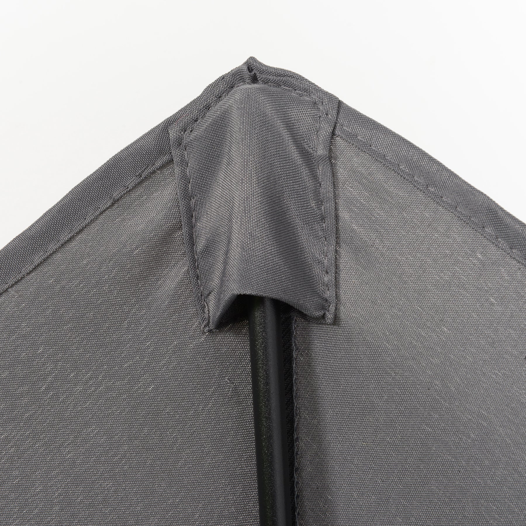 • Aluminiumsrammen holder parasollen oprejst, forbundet med baldakinen via seks stål ribber.