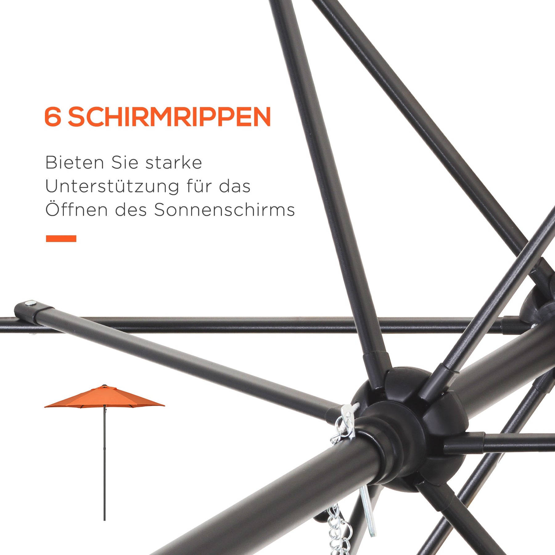 • Bemærk: 1. Fod medfølger ikke, må ikke stå åben i ekstremt vejr. 2. Kun parasol. For optimal stabilitet anbefales en paraplyfod på 15 kg.
