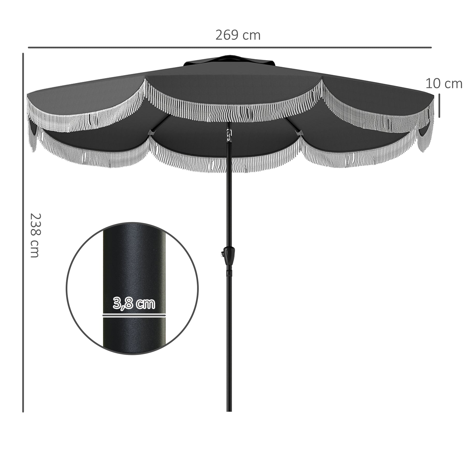 Denne haveparasol er designet til at være både funktionel og stilfuld. Den robuste konstruktion sikrer, at du kan nyde din tid udendørs, uanset vejret.