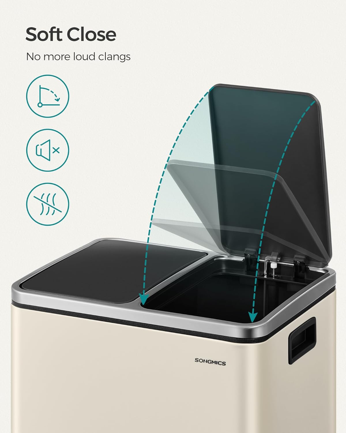 Lågene kan betjenes med foden, så dine hænder er fri til andre opgaver. De lukker stille og blødt, uden at smælde.