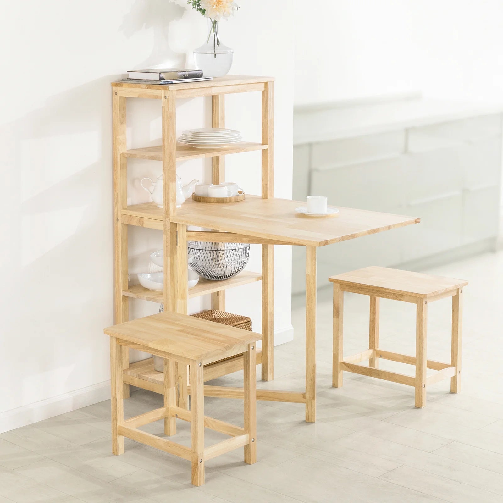 Gør din bolig mere funktionel med dette pladsbesparende og elegante spisebord. Bordpladen kan nemt foldes ud til at danne et spisebord og foldes ned igen for at frigive plads, når det ikke er i brug. På siden er der fem hylder, der er perfekte til opbevaring af bestik, glas eller andre ting, du skal bruge, når du sidder ved bordet.