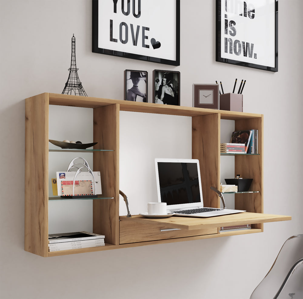Væg skrivebord, 115 x 20 cm, brun