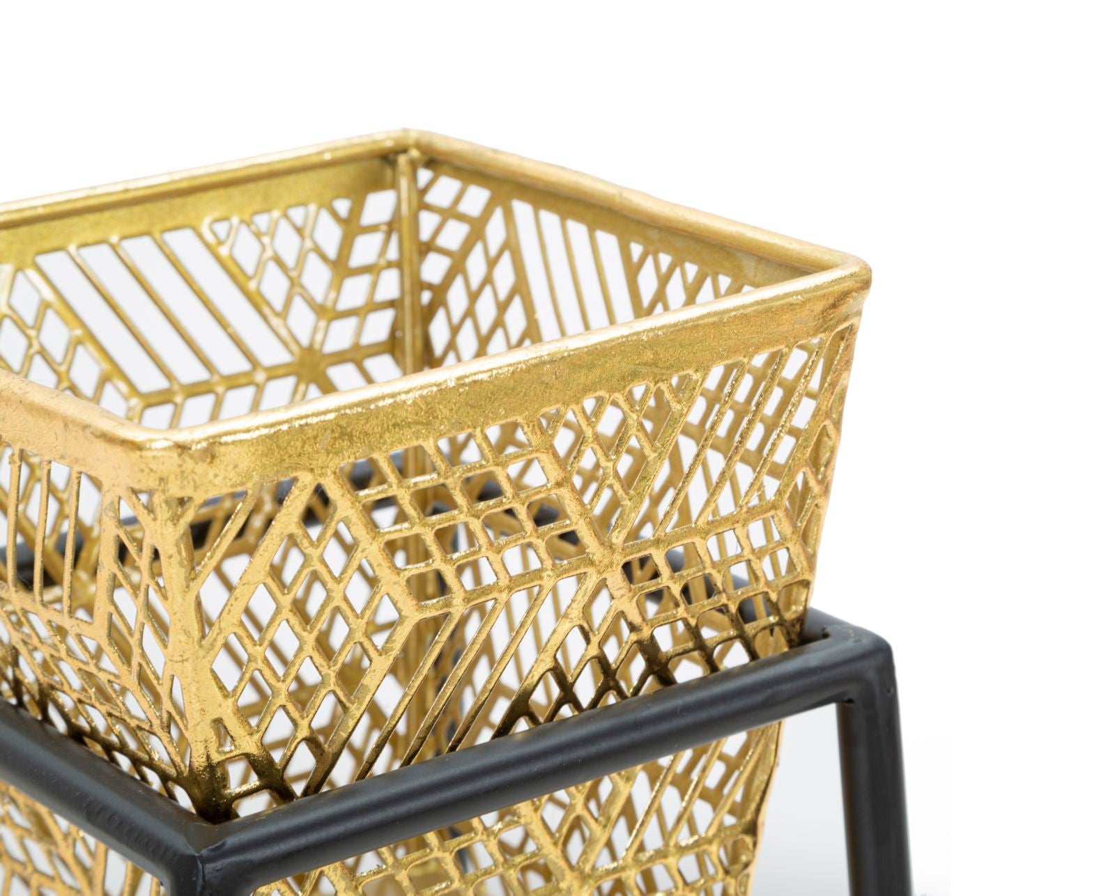 Dette elegante vasestel fra Glam-serien er en perfekt kombination af design og funktionalitet. Sættet består af to vasestativer, fremstillet af robust guldfarvet jern med en stilfuld sort metalfod, hvilket udstråler kvalitet og godt håndværk.