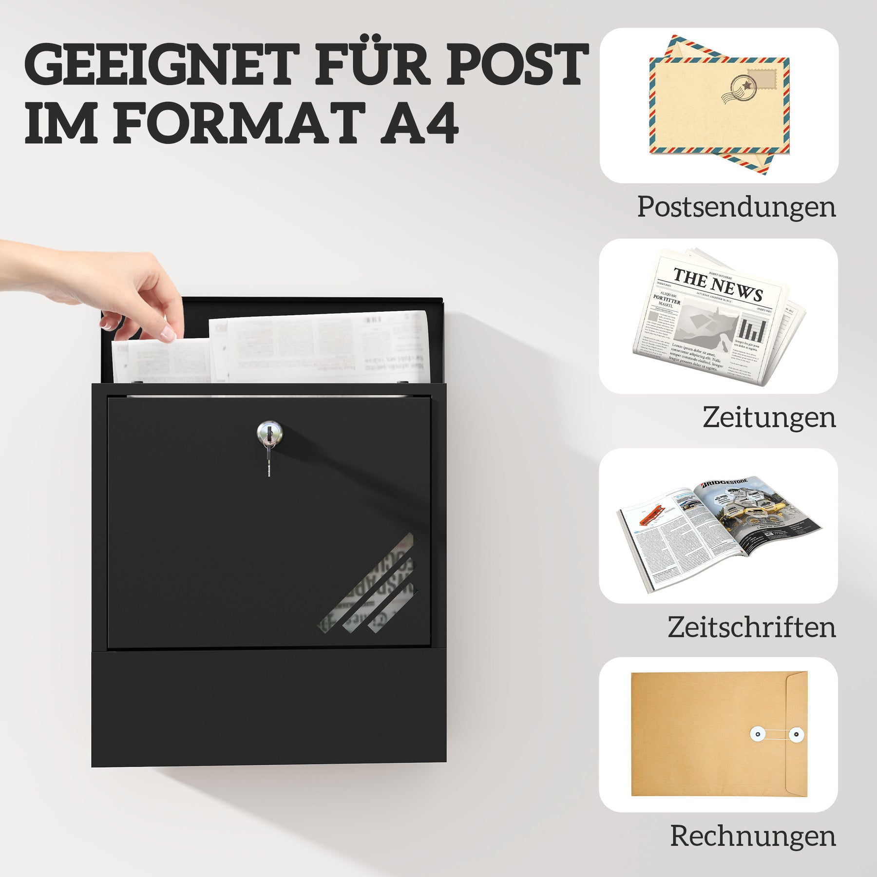 Opdag den moderne postkasse – din løsning til sikre postleveringer. Denne postkasse er lavet af robust metal, der effektivt beskytter mod rust og vejrforhold. Takket være det aflåselige design opbevares din A4-post sikkert, og et praktisk vindue giver dig mulighed for hurtigt at se dine pakker.