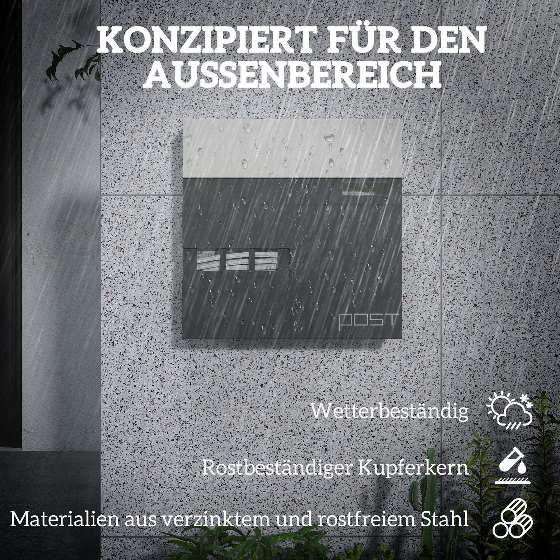 Opdag postkassen: dit førstevalg til pålidelig udendørs postsikkerhed. Denne postkasse er fremstillet af galvaniseret og rustfrit stål, som effektivt modstår rust og let vejrpåvirkning. Det skrånende tag holder regnen væk, og det aflåselige design beskytter din A4-post.
