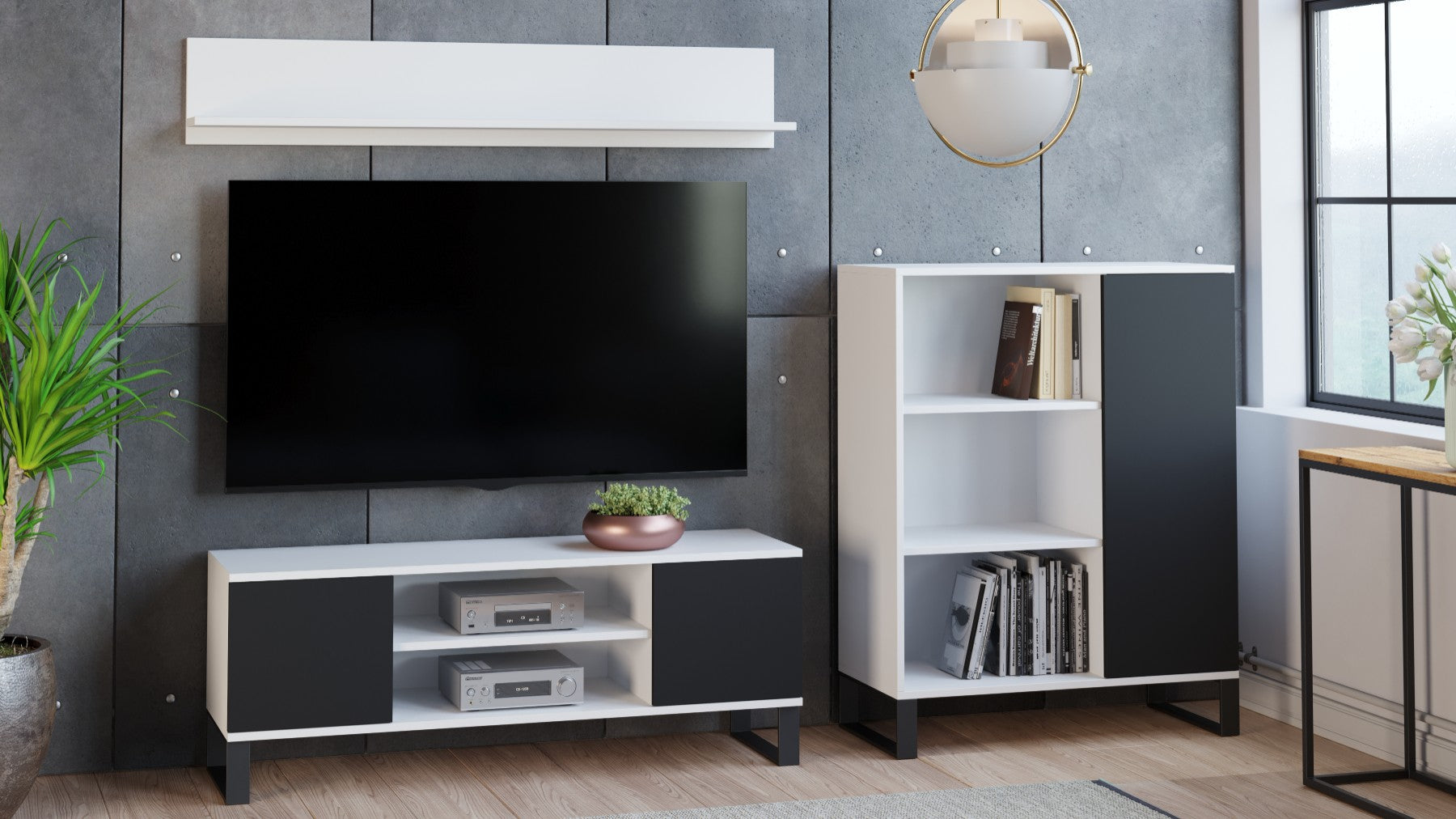 • Funktionelle hylder- Ideel til fotos, bøger og pyntegenstande, så du kan personliggøre din stue.