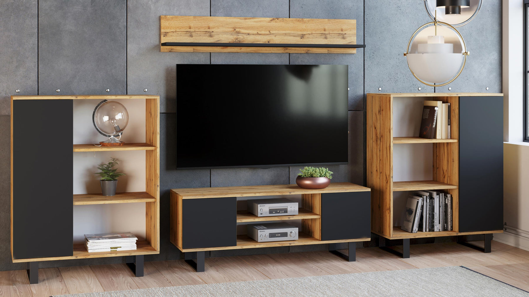 FONDI-skabet er et yderst funktionelt møbel til din stue, der kombinerer enkelhed med et iøjnefaldende loft-inspireret look. Med sine minimalistiske former og råmaterialer som metalelementer og træ bringer dette skab en unik atmosfære og karakter til interiøret. Det er den ideelle løsning for dem, der værdsætter praktisk anvendelighed og moderne design i ét. FONDI-skabet er både funktionelt og æstetisk tiltalende og tilbyder opbevaringsplads og mulighed for at vise dine yndlingspyntegenstande frem.