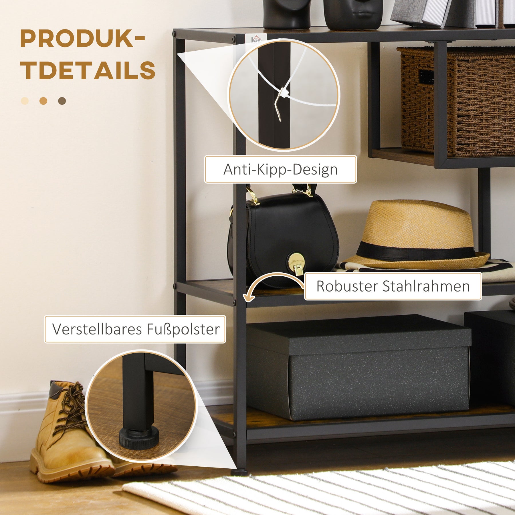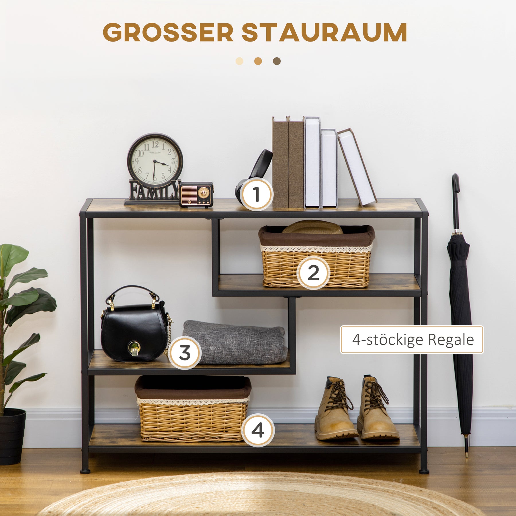 Hylde, konsolbord, industrielt design, 4 hylder, stålstel, 99,6 x 33,6 x 74 cm