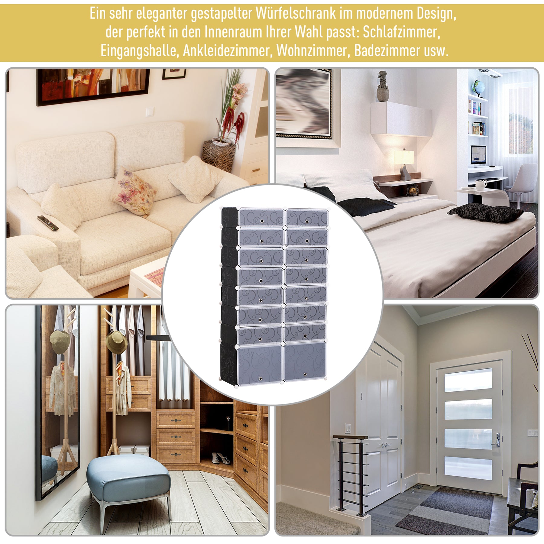 Med holdbare plastikpaneler og en pulverlakeret metalramme, der er let at rengøre, får du en elegant opbevaringsløsning. De halvtransparente døre sikrer, at du hurtigt kan finde det, du leder efter, uanset om det er som skoskab, rumdeler eller universel opbevaring.