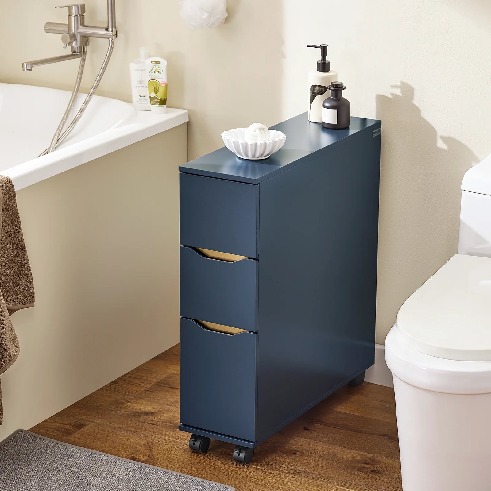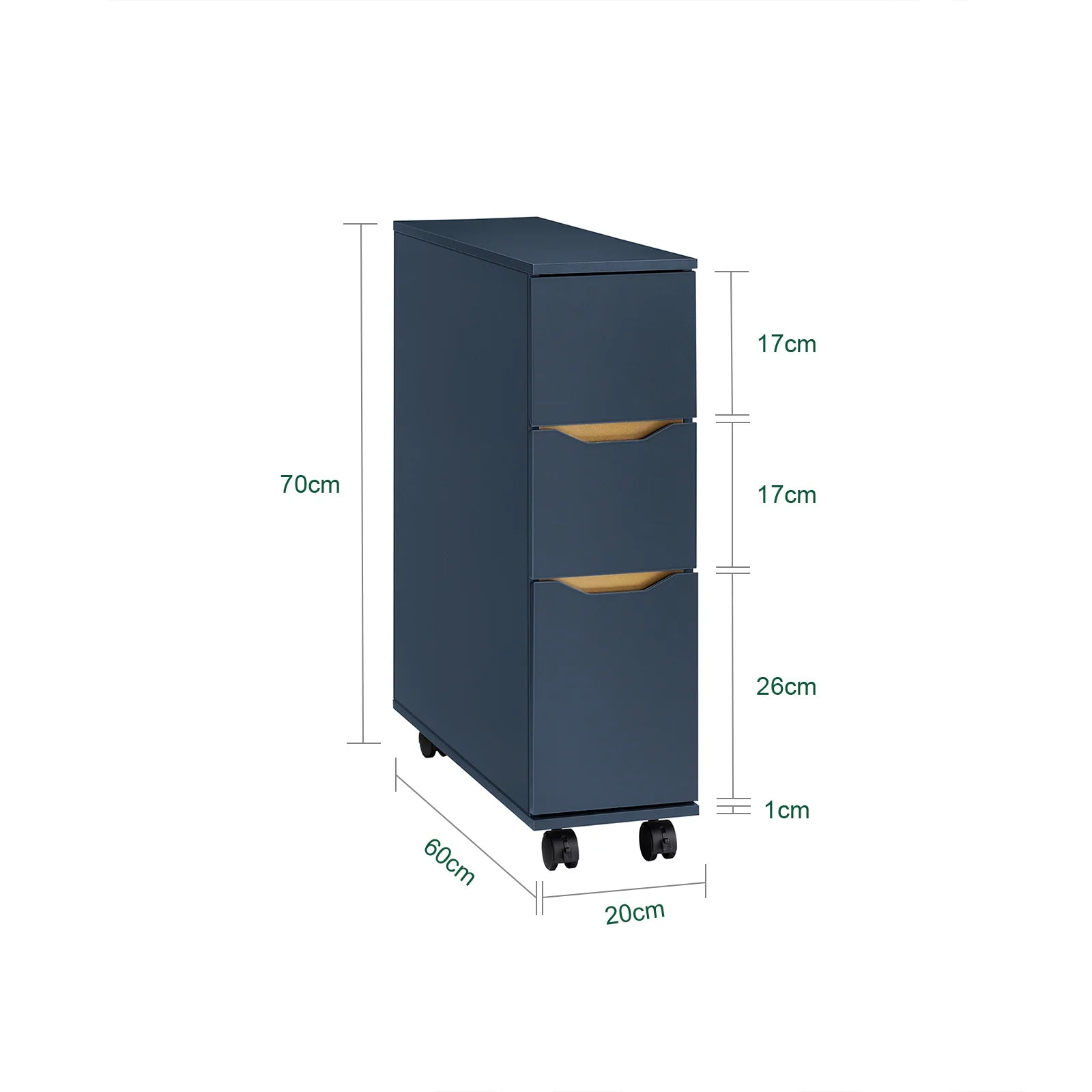 Dette smalle møbel er designet med tre rummelige skuffer, der giver dig masser af opbevaringsplads til alt fra håndklæder og toiletartikler på badeværelset til diverse sager i stuen eller køkkenet. De letglidende skuffer sikrer hurtig og nem adgang til dine ting, så du altid har det, du skal bruge, lige ved hånden. Derudover er der en praktisk åben sideplads med en højde på 60 cm, perfekt til opbevaring af en toiletbørste eller andre høje genstande.
