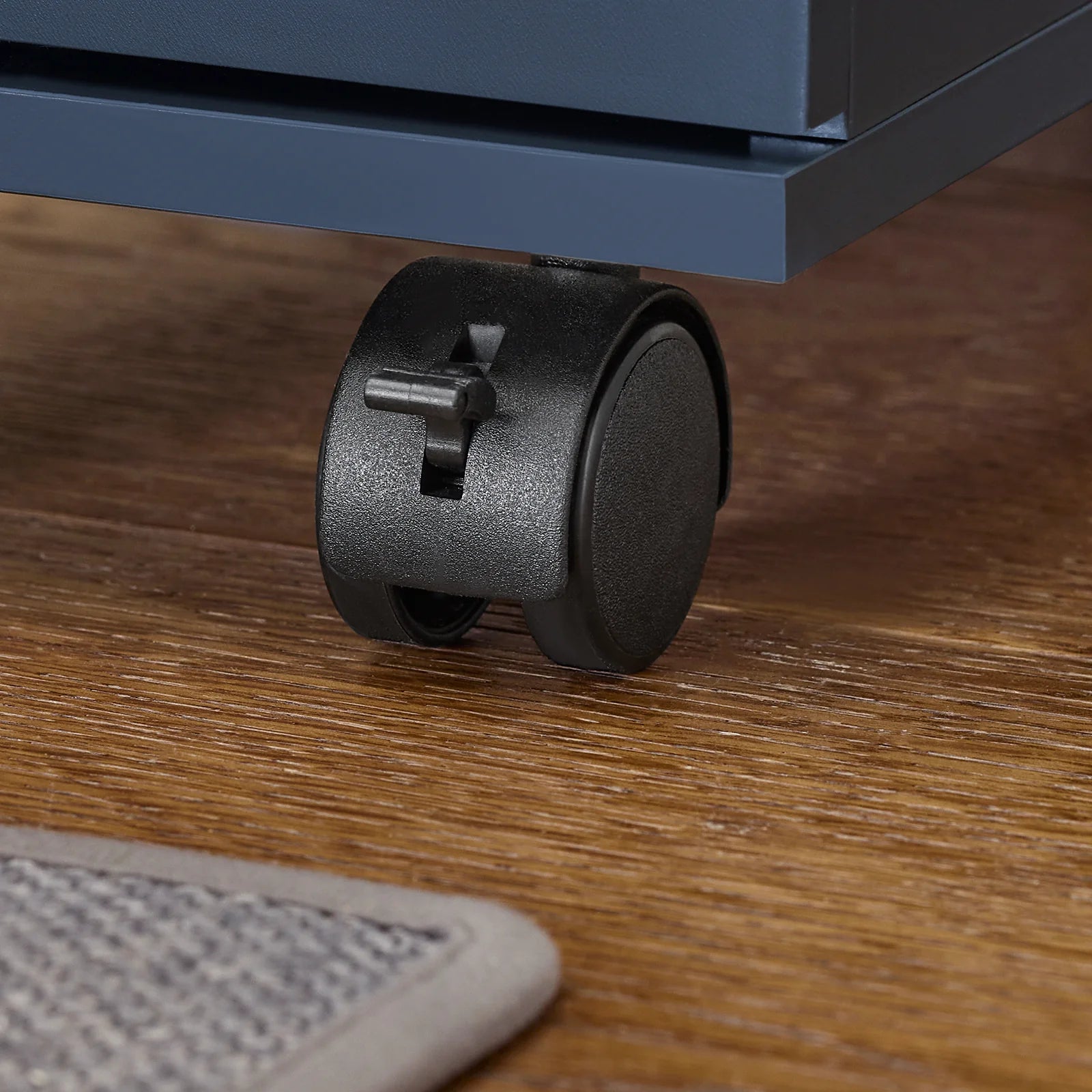Med sine fire letløbende hjul, hvoraf to har bremser, kan du nemt flytte møblet rundt efter behov og sikkert placere det, hvor du ønsker. Slut med tunge løft og besværlige omrokeringer! De smarte, medfølgende klistermærker til at dække skruehullerne sikrer en glat og fuldendt overflade, der er behagelig for øjet.
