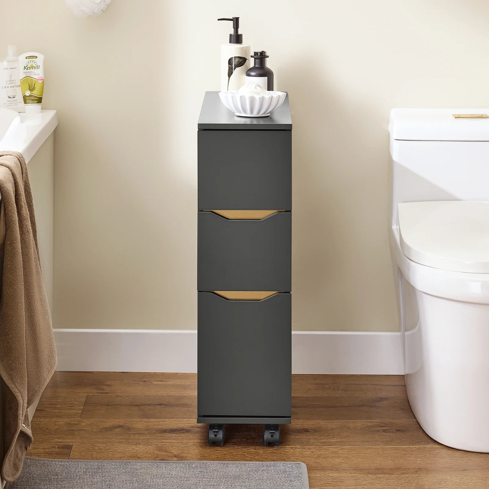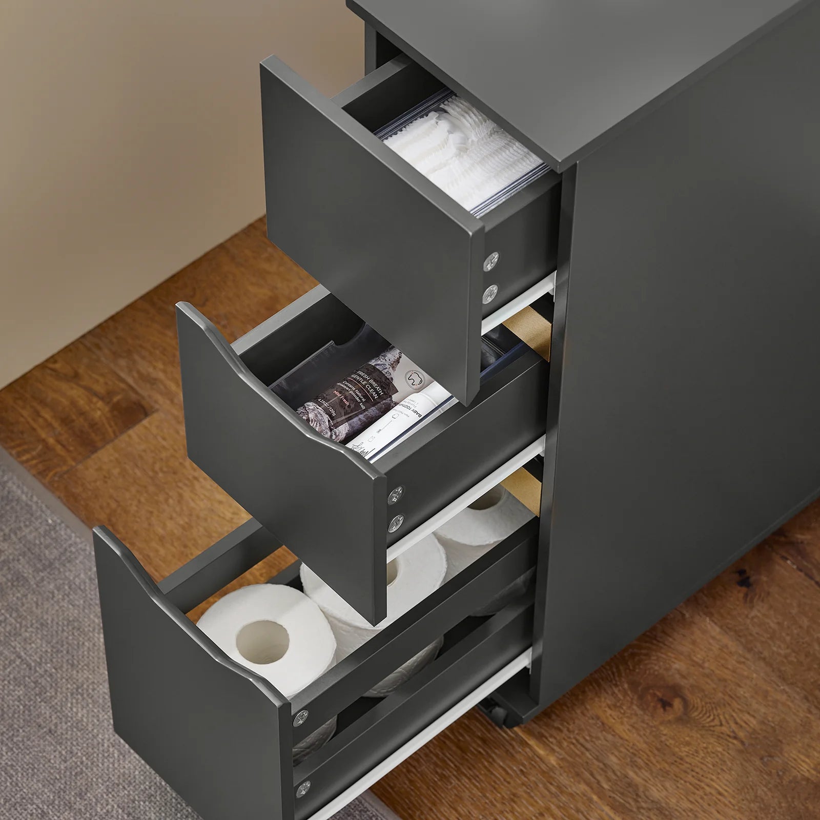 Det har tre rummelige skuffer og et åbent rum på siden med 70 cm højde – ideelt til en toiletbørste eller høje genstande. Skufferne glider let og giver dig nem adgang til dine ting.