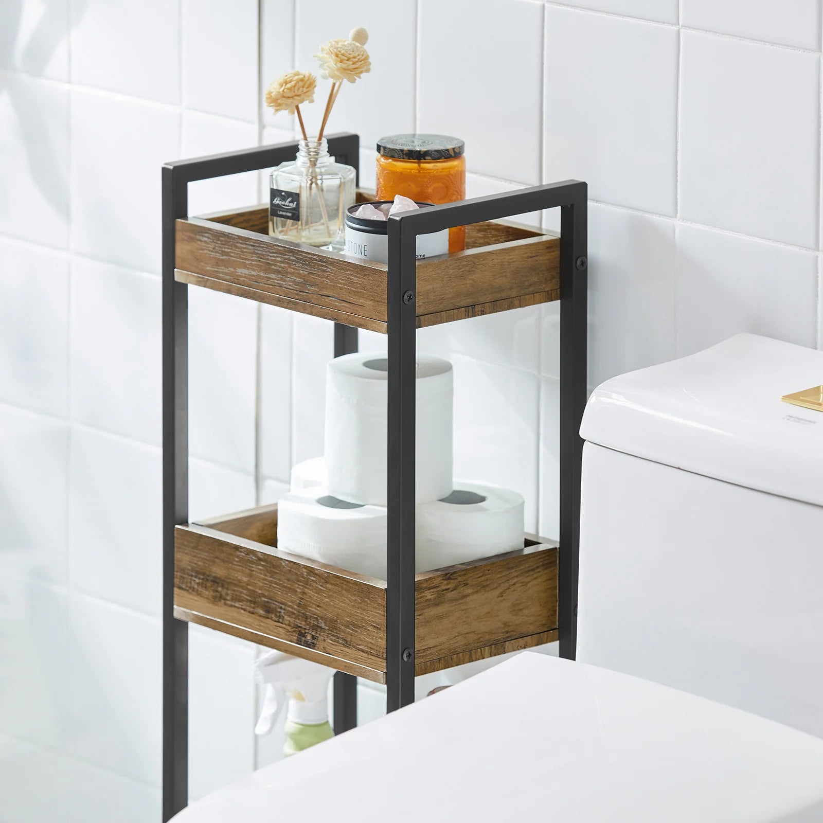 Tilføj stilfuld opbevaring til ethvert rum med denne moderne 3-lags hylde. Det slanke design og den dybde på kun 20 cm gør hylden ideel til selv de mindste rum, og den er den perfekte løsning til at holde dit hjem ryddeligt og organiseret. Brug den på badeværelset til håndklæder og toiletartikler eller i stuen og soveværelset til bøger og pyntegenstande.