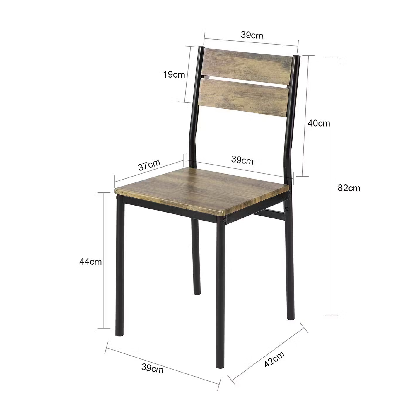 Stel: Stol: 39 x 37 cm, sædehøjde: 44 cm, ryglænshøjde: 40 cm
