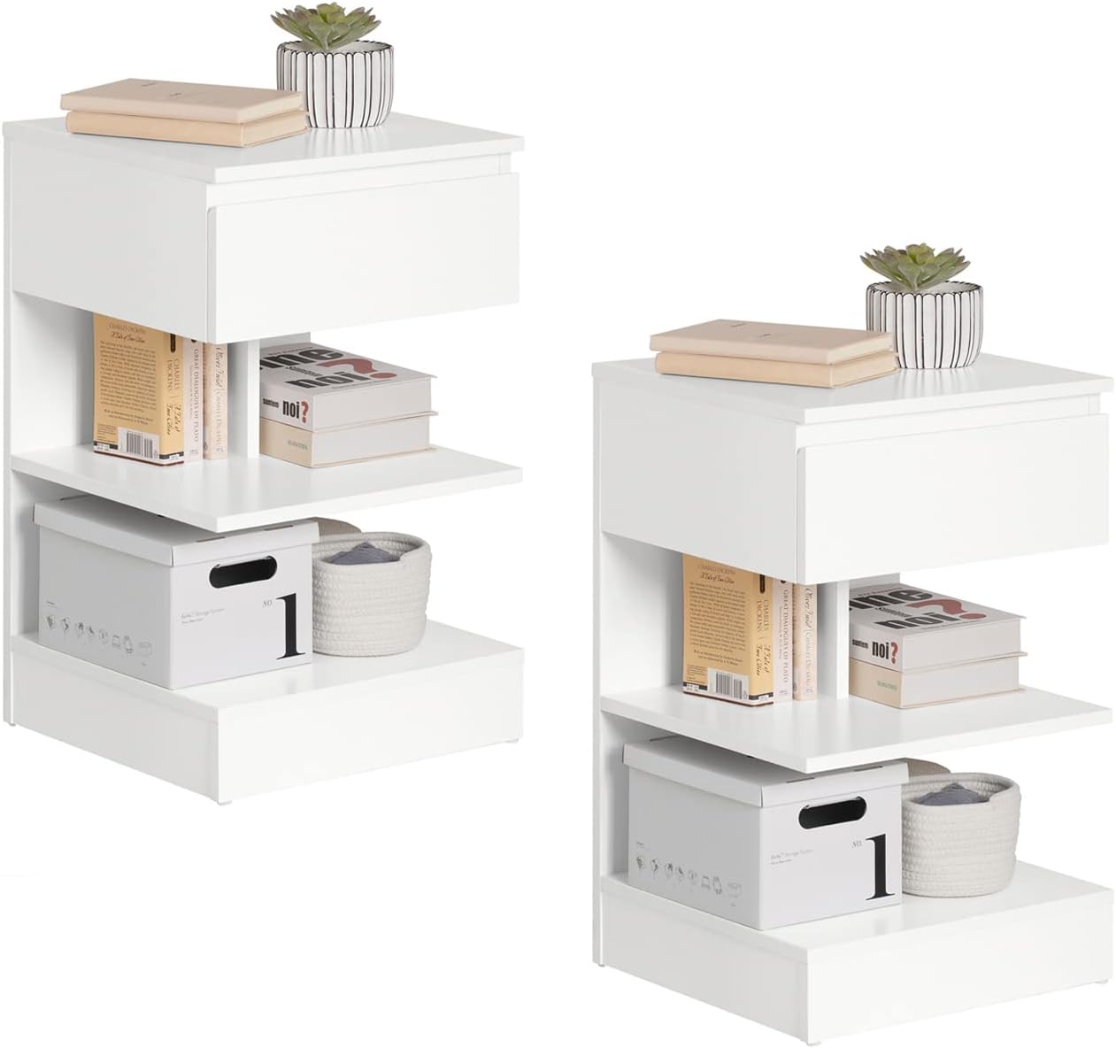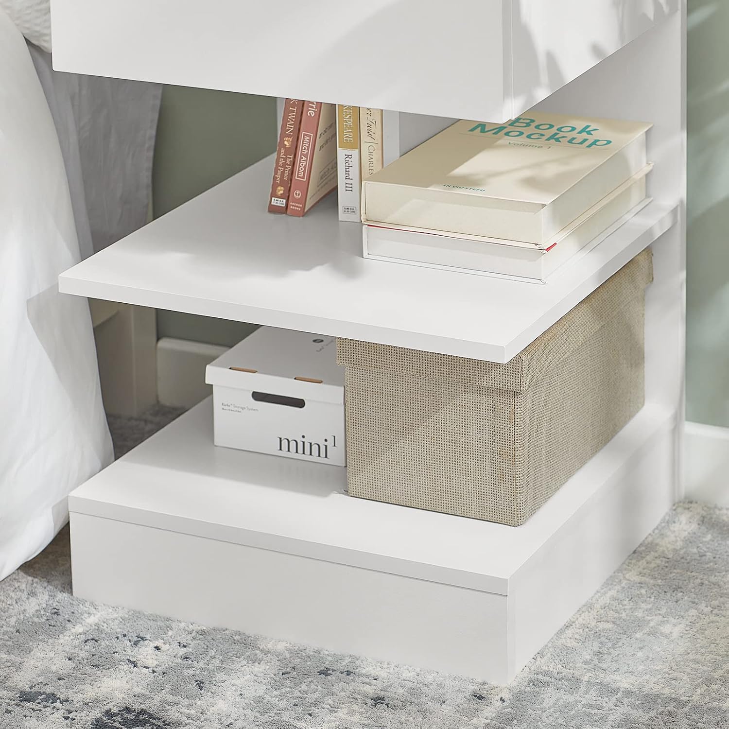 Med 1 rummelig skuffe med 2 åbne hylder - perfekt til at organisere vigtige ting ved sengen som bøger, briller eller opladere i dit soveværelse eller stue.