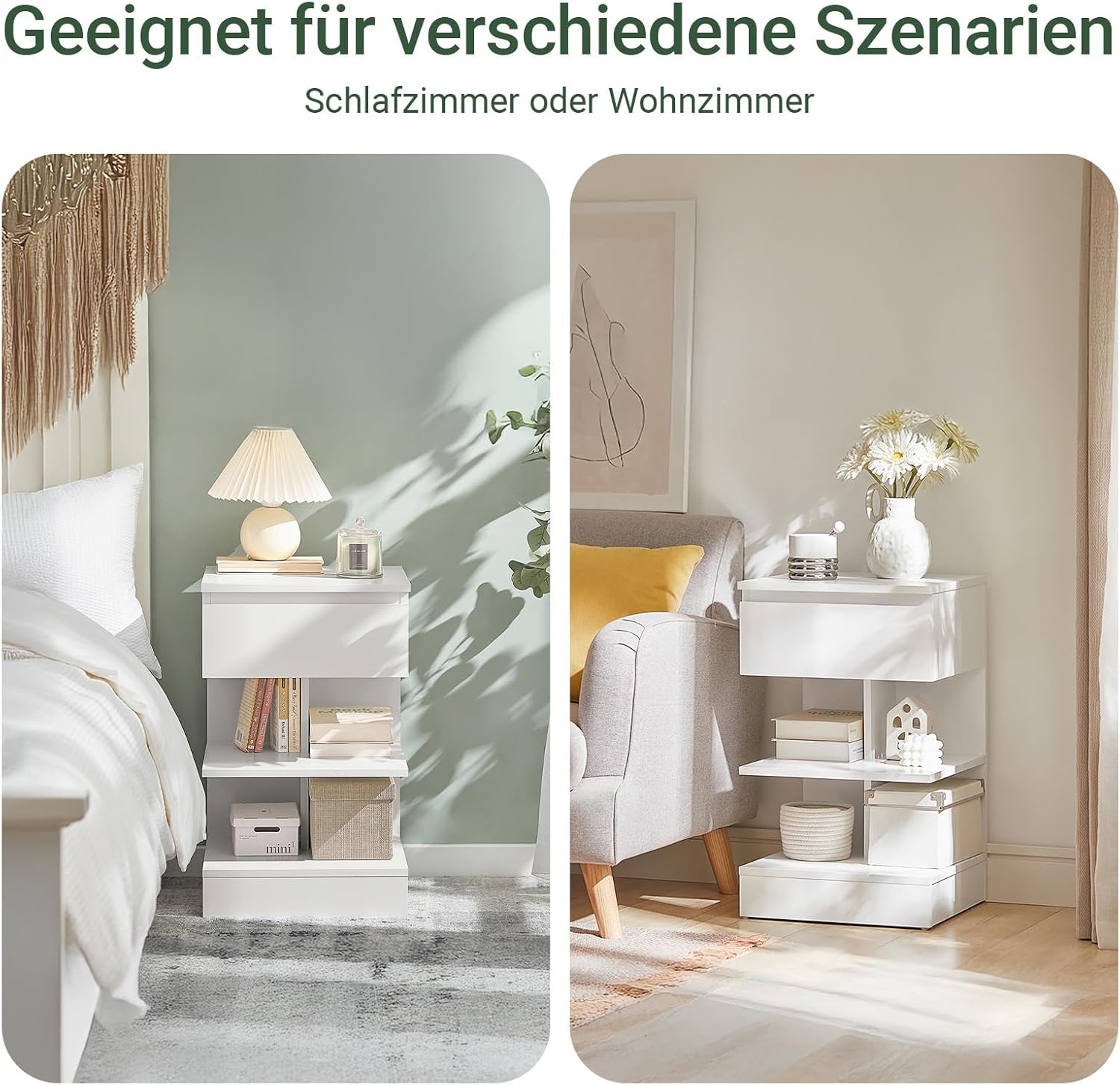 Mere end blot et natskab. Soveværelse: Bevarer vigtige ting inden for rækkevidde. Stue: Stilfuldt sidebord til fjernbetjeninger og drikkevarer. Arbejdsværelset/kollegieværelse: Små opbevaringsskabe til små rum.