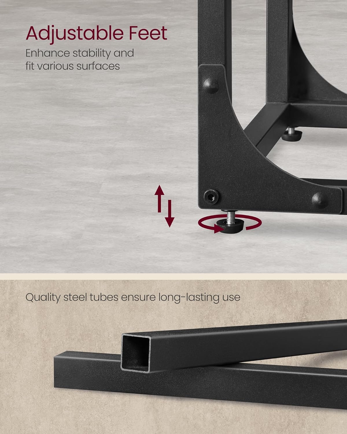 Bordet er bygget til at holde. Den er fremstillet af et robust stålstel og en holdbar spånplade, der tilsammen sikrer en solid og stabil konstruktion. Med et minimalistisk look i rustik brun og sort passer bordet let ind i de fleste indretningsstile og tilføjer et elegant, industrielt præg.