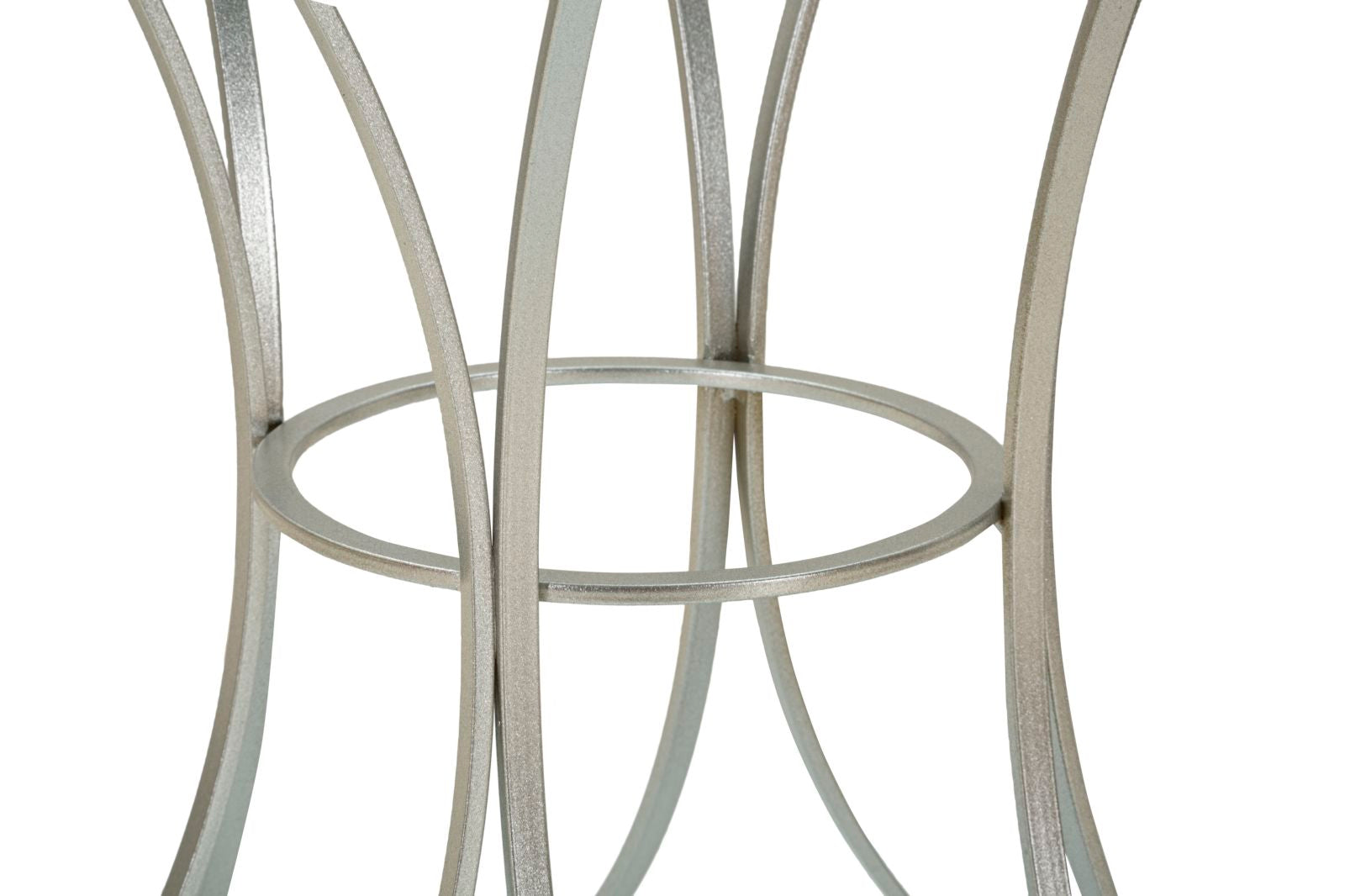 Med sin elegante sølvfarvede metalramme og en bordplade af hærdet glas tilfører bordet en raffineret og moderne atmosfære til rummet. Dets rene og lyse design giver lethed, mens refleksionerne fra glas og metal skaber et stilfuldt og eksklusivt udtryk.