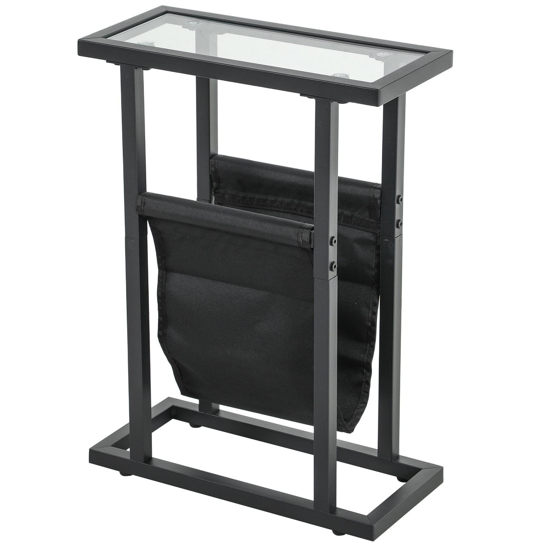 Opdag det elegante sidebord til smalle rum, ideelt til moderne interiører. Med en glasoverflade og en opbevaringstaske i linned kombinerer dette lille sidebord stilfuldt design med funktionalitet. Perfekt som bord i stuen eller som natbord i soveværelset.