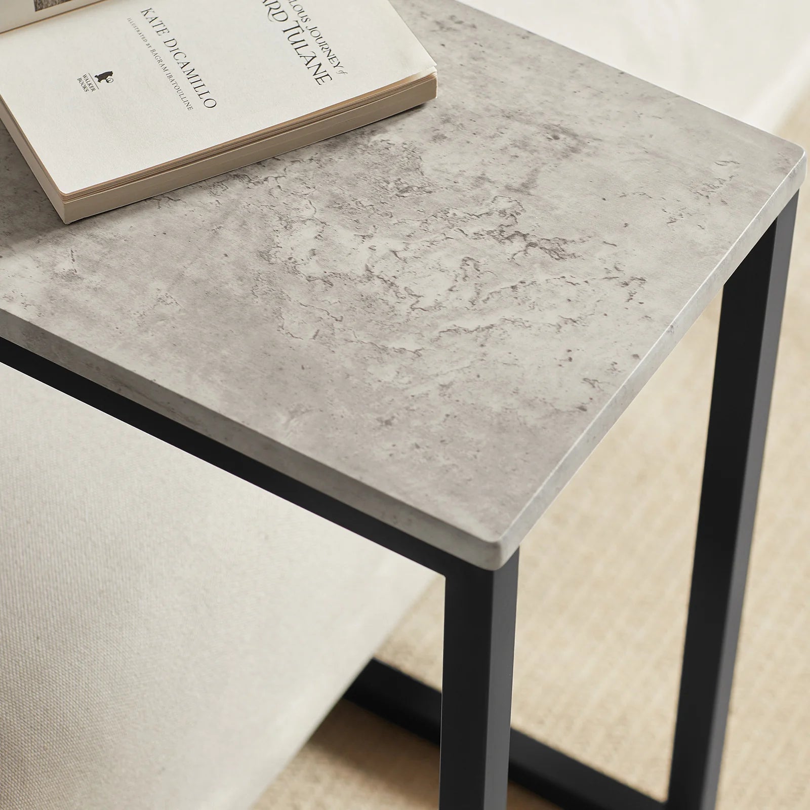 Tilføj et moderne og elegant touch til dit hjem med dette slanke sidebord. Det er den perfekte løsning ved siden af sofaen eller sengen, da det giver dig et praktisk sted at opbevare dine ting. Den flotte bordplade med marmorlook er ideel til at holde bøger, fjernbetjeninger og glas inden for rækkevidde.