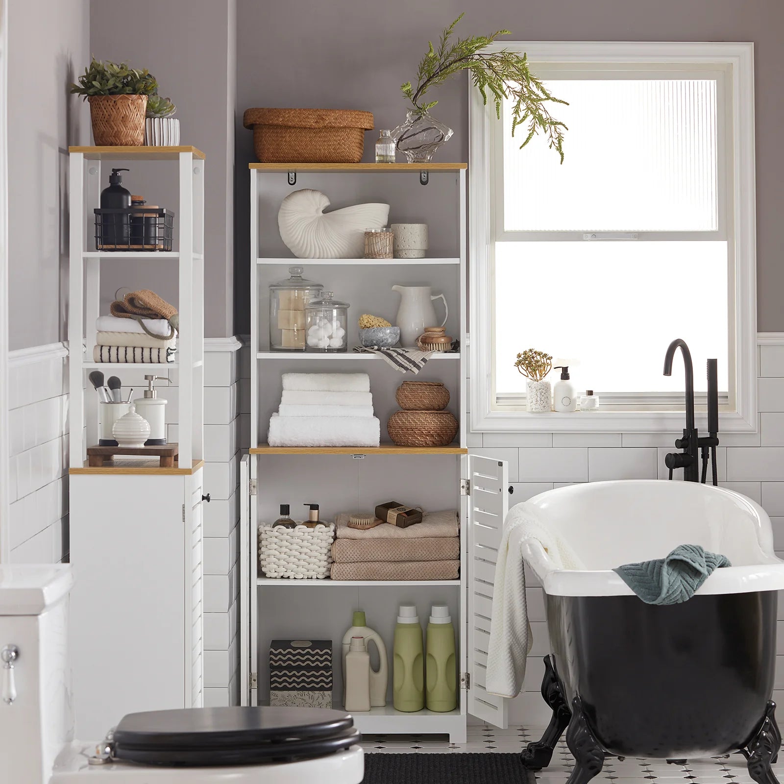 Optimér din plads med dette elegante og funktionelle opbevaringsskab, der er designet til at holde dit hjem ryddeligt og stilfuldt. Med sit smalle design passer det perfekt ind på badeværelset, i stuen eller i soveværelset.